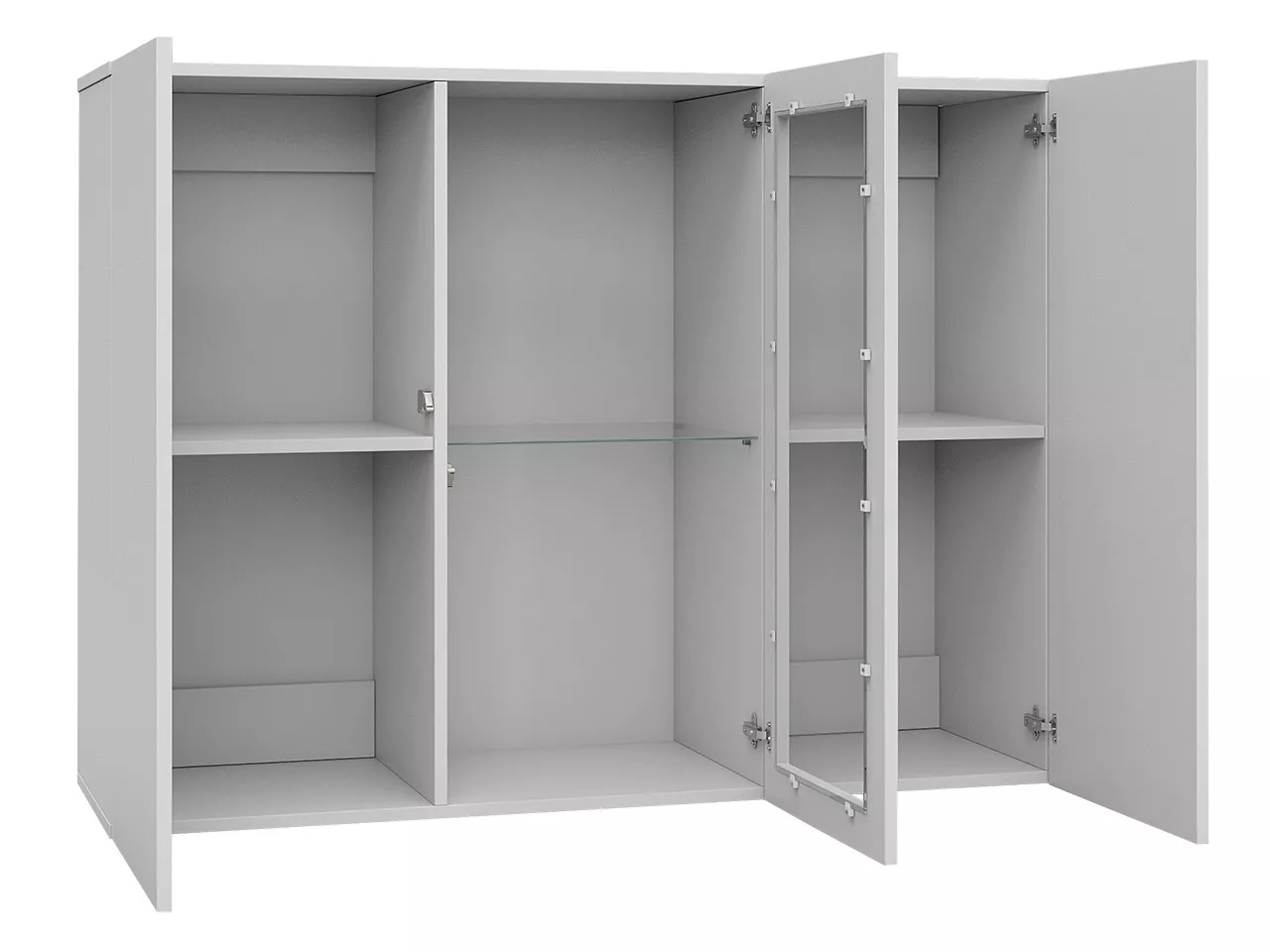 Praktická komoda ASHTON najde své využití v každém moderním interiéru. Prosklená prostřední část komody může sloužit k vystavení a uložení dekorací, suvenýrů nebo knih. V prostorných skříňkách můžete snadno ukládat jakékoliv předměty, včetně studijního materiálu či sezónního oblečení. Konstrukce komody ASHTON je vyrobena z vysoce kvalitní LTD desky v matné barvě. Dvířka jsou vyrobená z MDF materiálu v lesklém provedení. Komoda je vybavena praktickým LED bílým osvětlením. Také je vybavena systémem otevírání "push to open" - stačí pouze zatlačit a dvířka se otevřou.