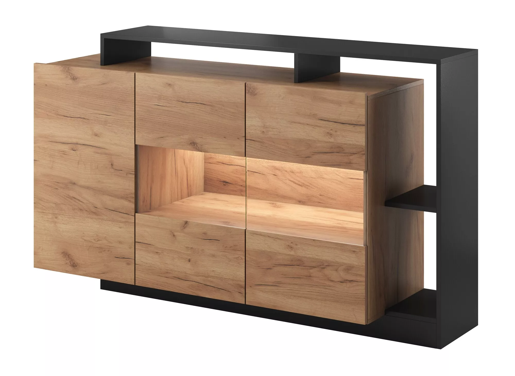 Prosklená komoda EUFALA - dub kraft zlatý / antracitová