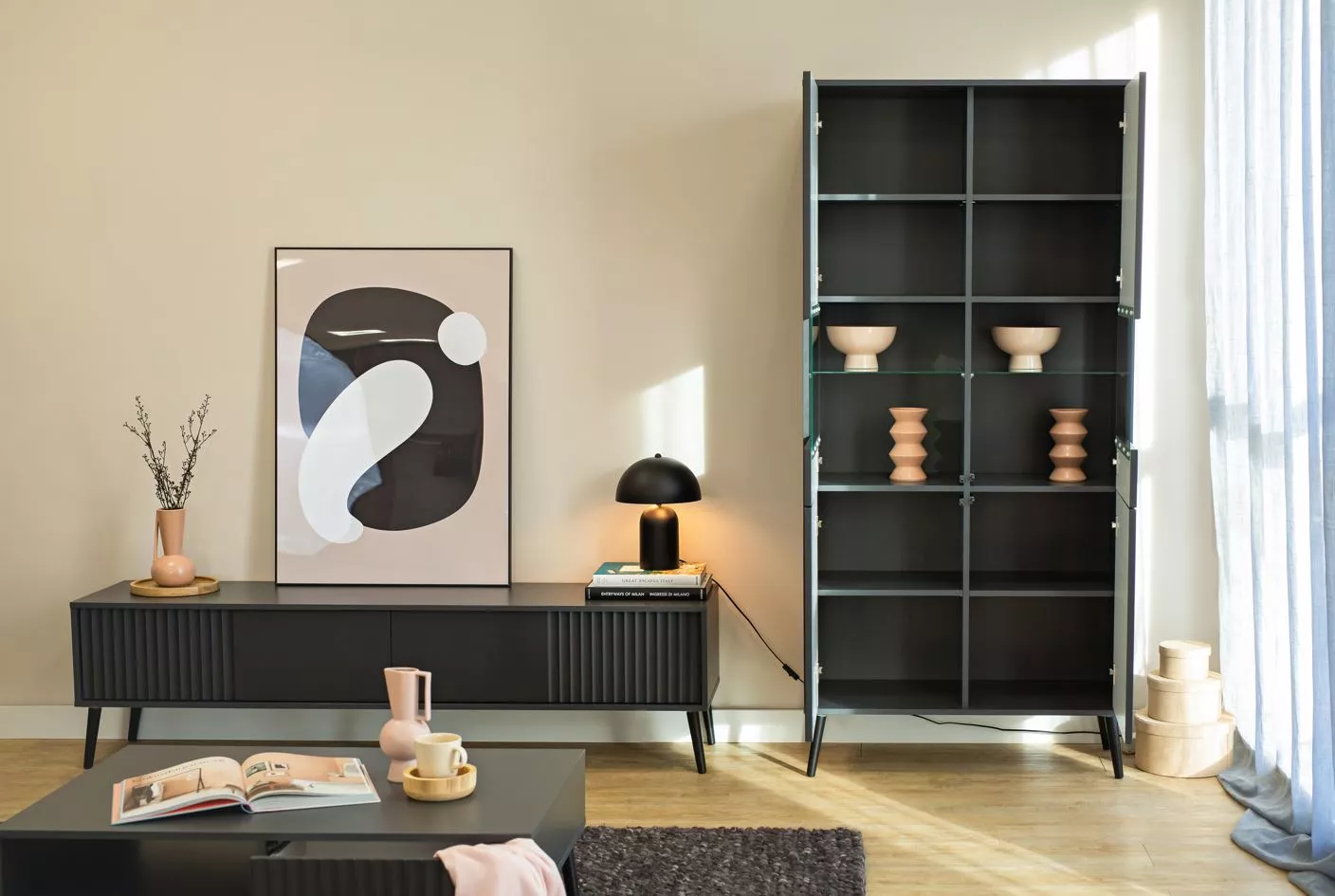 Prosklená vitrína do obýváku JEWETT - antracitová