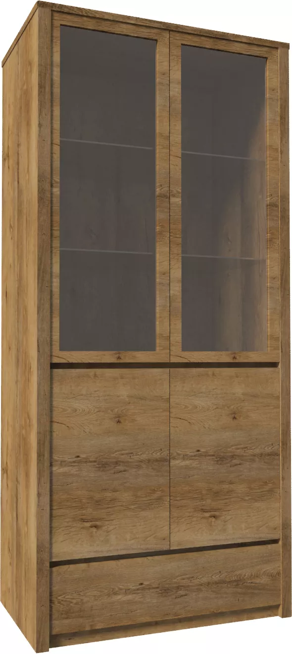 Dvoudveřová prosklená vitrína FEREIRA - dub lefkas