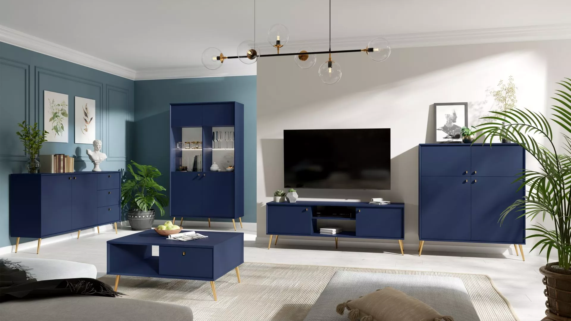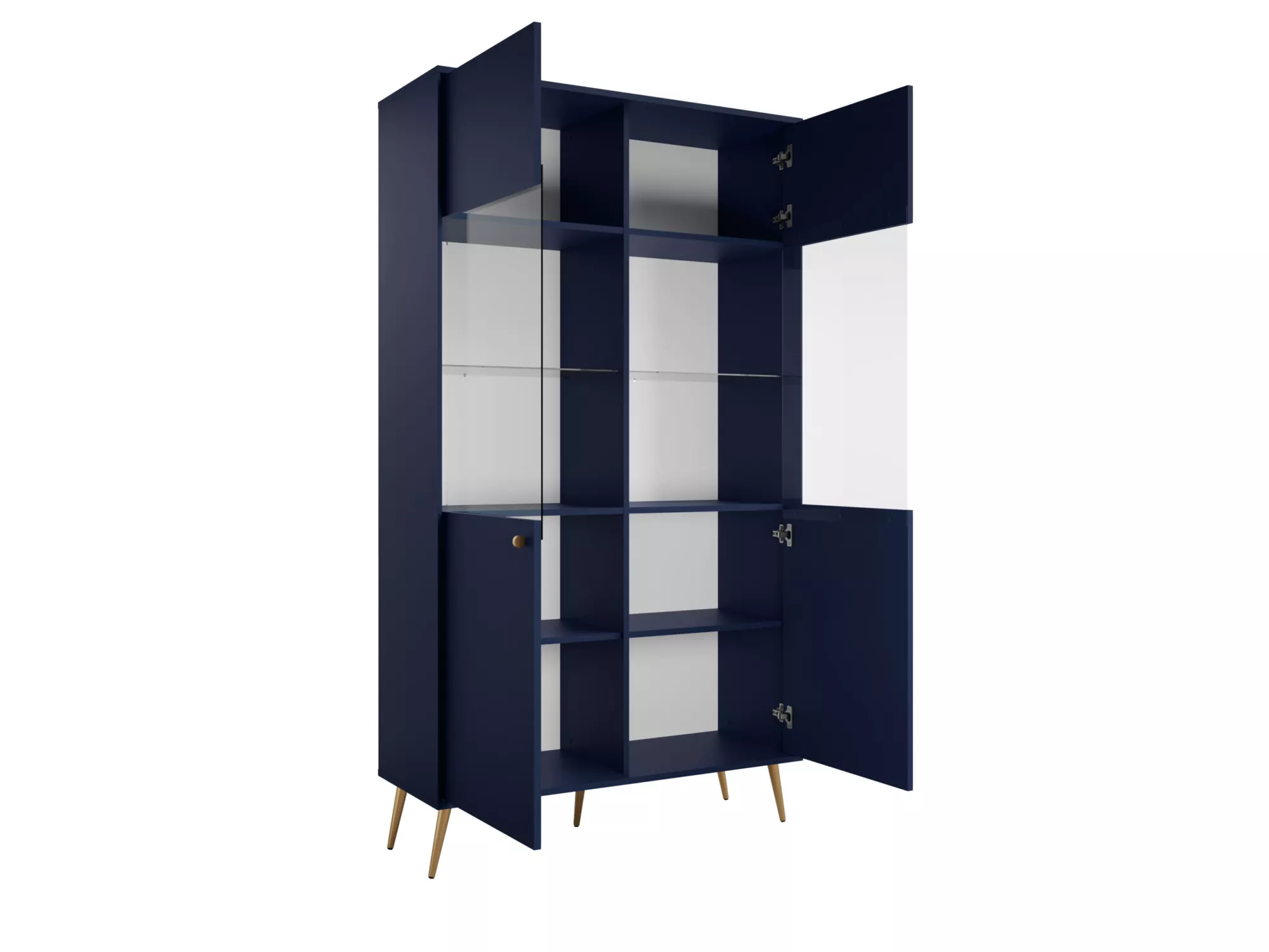 Pořiďte si vitrínu PITALITO, která zaujme stylovým spojením funkčnosti a elegance. Prosklená dvířka nabídnou prostor pro vystavení oblíbených dekorací, zatímco skrytá část diskrétně uschová vše potřebné. Stabilní konstrukce se hodí do obývacího pokoje i reprezentativního salónku. Tmavě modrý povrch doplňují zlaté nohy a úchytky, které dodávají vitríně moderní šmrnc.
