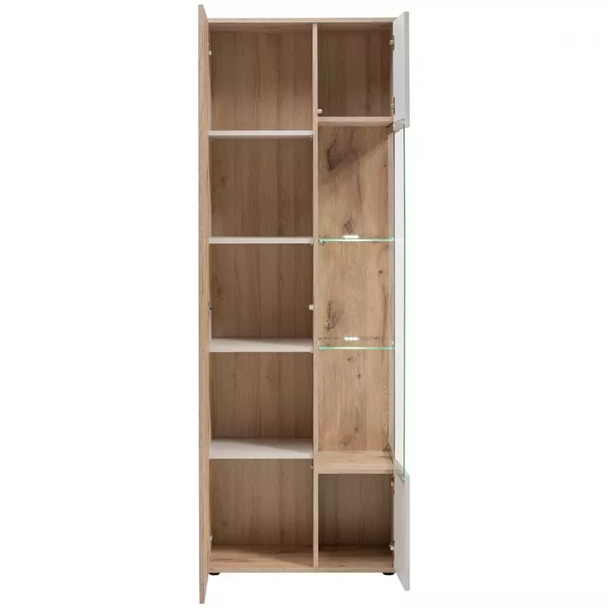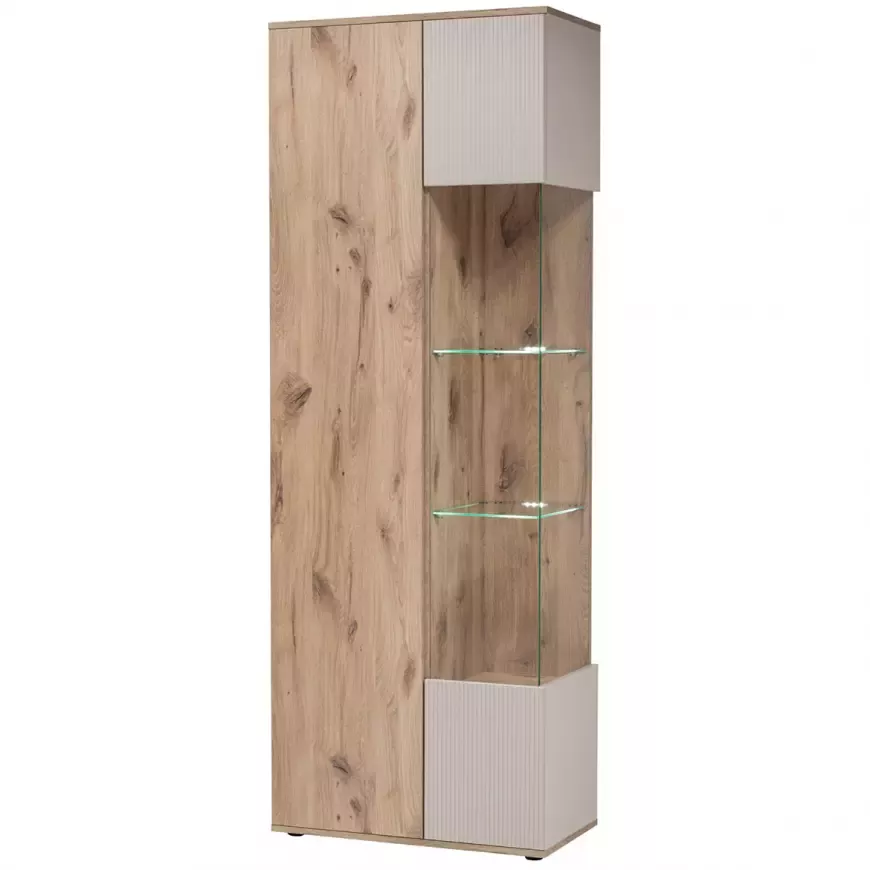 Prostorná vitrína HAIKA s LED osvětlením - dub viking / kašmír