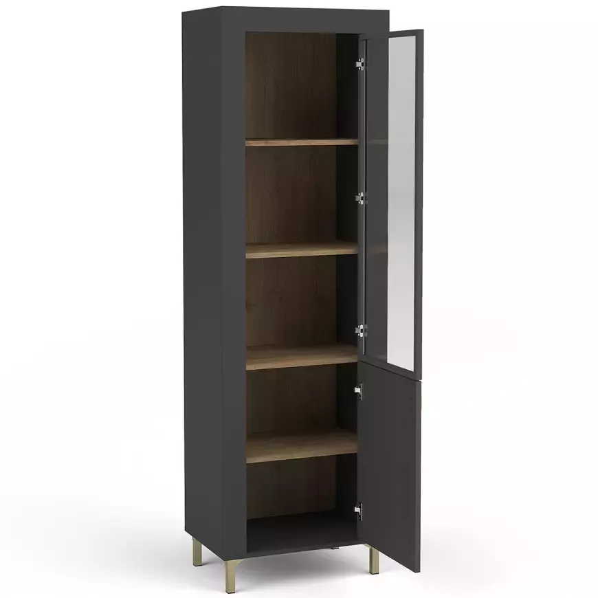 Úzká prosklená vitrína AUROVA - černá / dub whiskey
