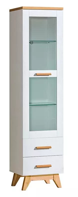 Úzká prosklená vitrína BUTNER - borovice andersen / dub nash