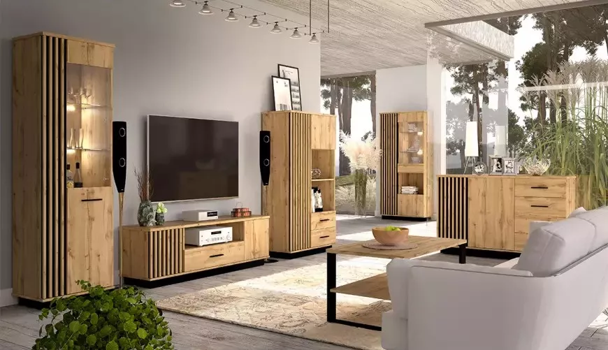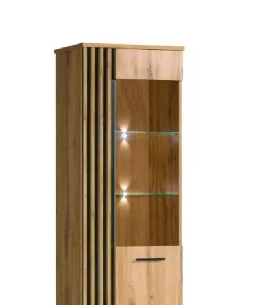 Úzká vitrína CATAWBA na první pohled zaujme svými designovými lamelovými prvky. Vitrína nabídne spoustu úložného prostoru pro vystavení fotografií nebo dekorací. Její originální design a kvalitní zpracování vdechnou vašemu interiéru nadčasový styl a eleganci.