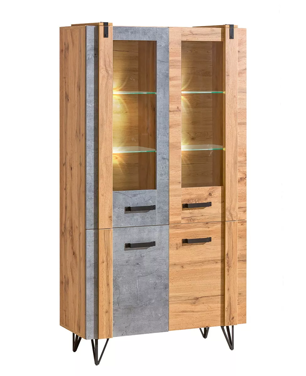 Prosklená vitrína CONOVER - dub wotan / beton / černá