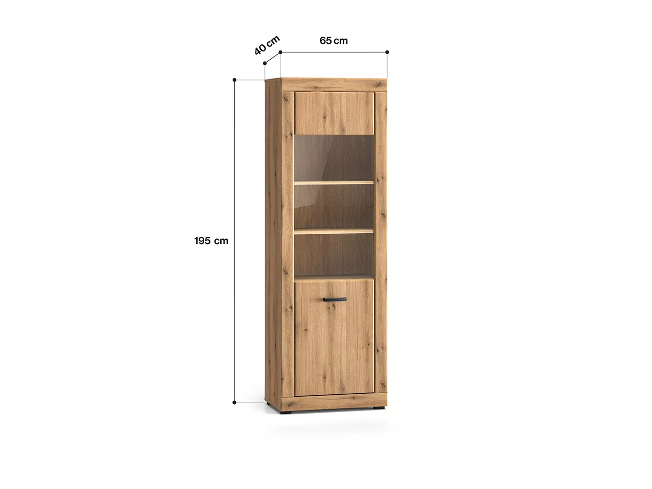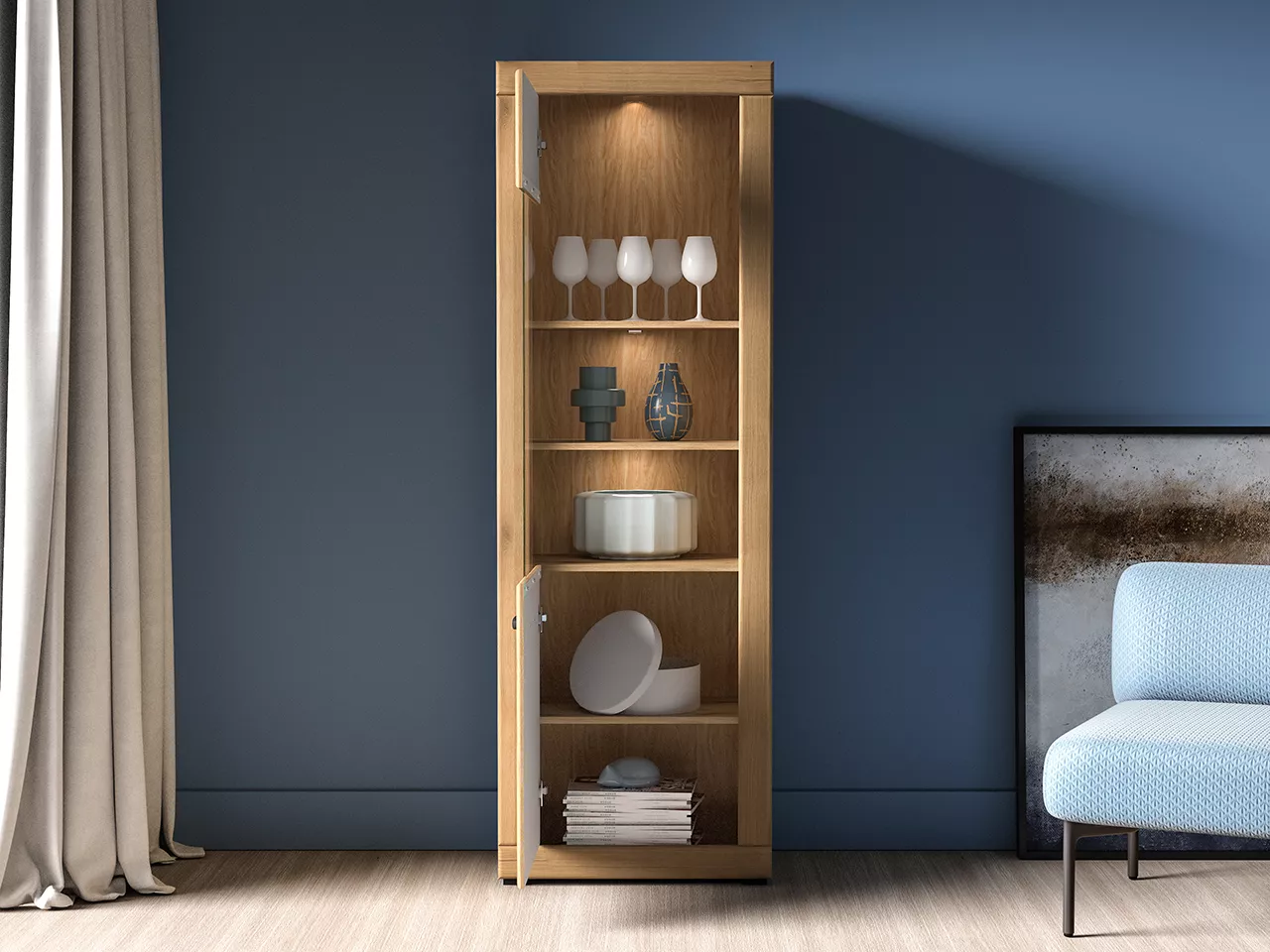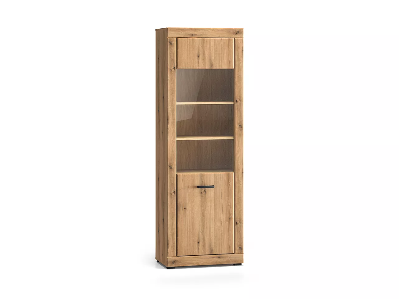Prosklená vitrína ADELLA díky svému dekoru dubu skvěle zapadne do každého stylu interiéru. Prosklená dvířka umožní vystavení vašich oblíbených dekorací nebo nádobí. Systém tichého dovírání zpříjemní každodenní používání.