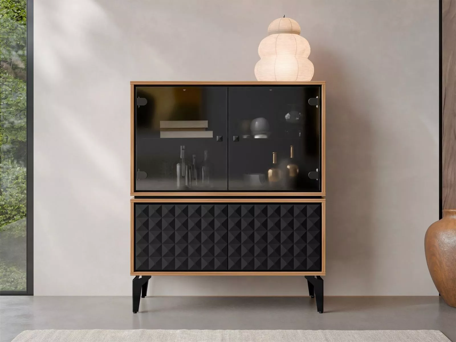 Nízká prosklená skříňka KALWI - barokní dub jantarový / černá