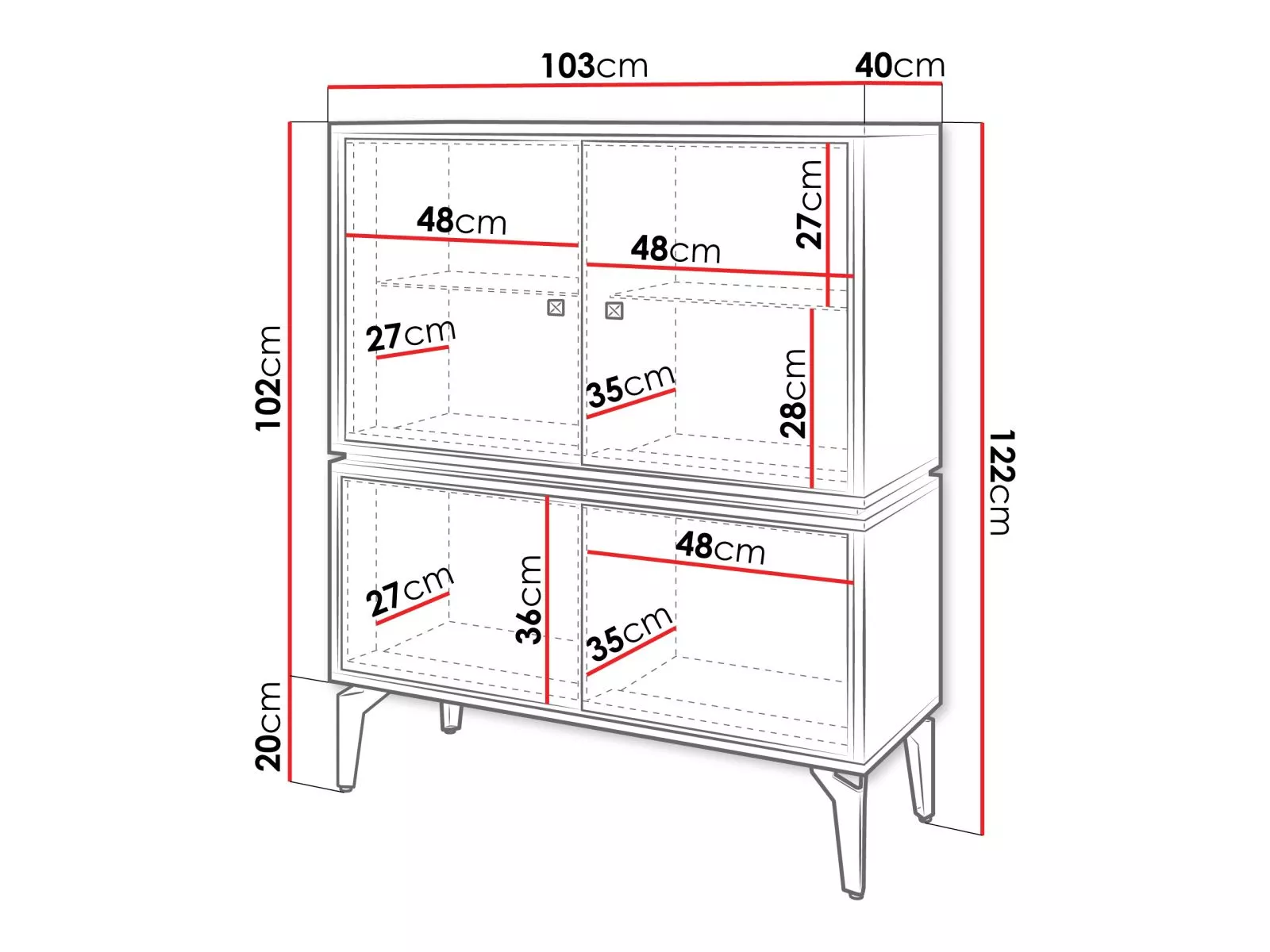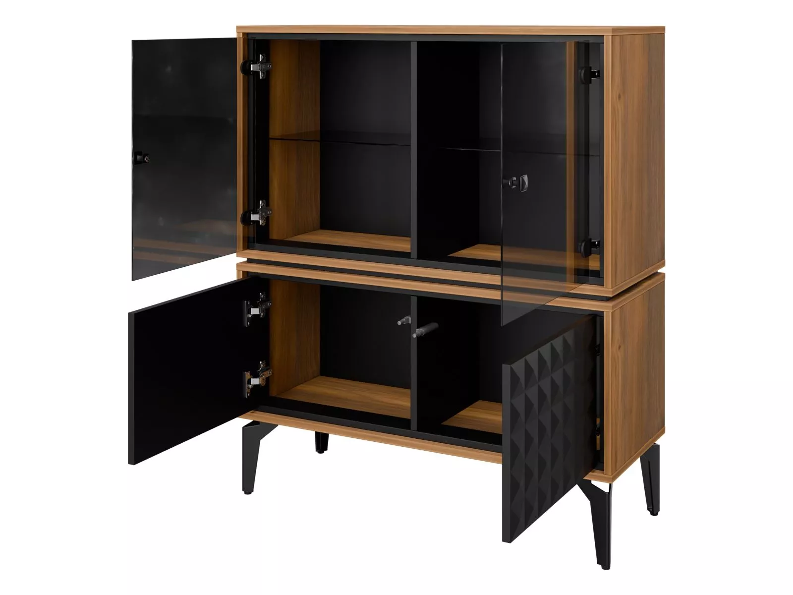 Dopřejte si nízkou prosklenou skříňku KALWI, která spojuje moderní vzhled s praktickým řešením. Jedinečná spodní dvířka s 3D strukturou a kovové nohy podtrhují elegantní design, zatímco systém otevírání PUSH TO OPEN zajistí pohodlné a tiché používání bez úchytek.