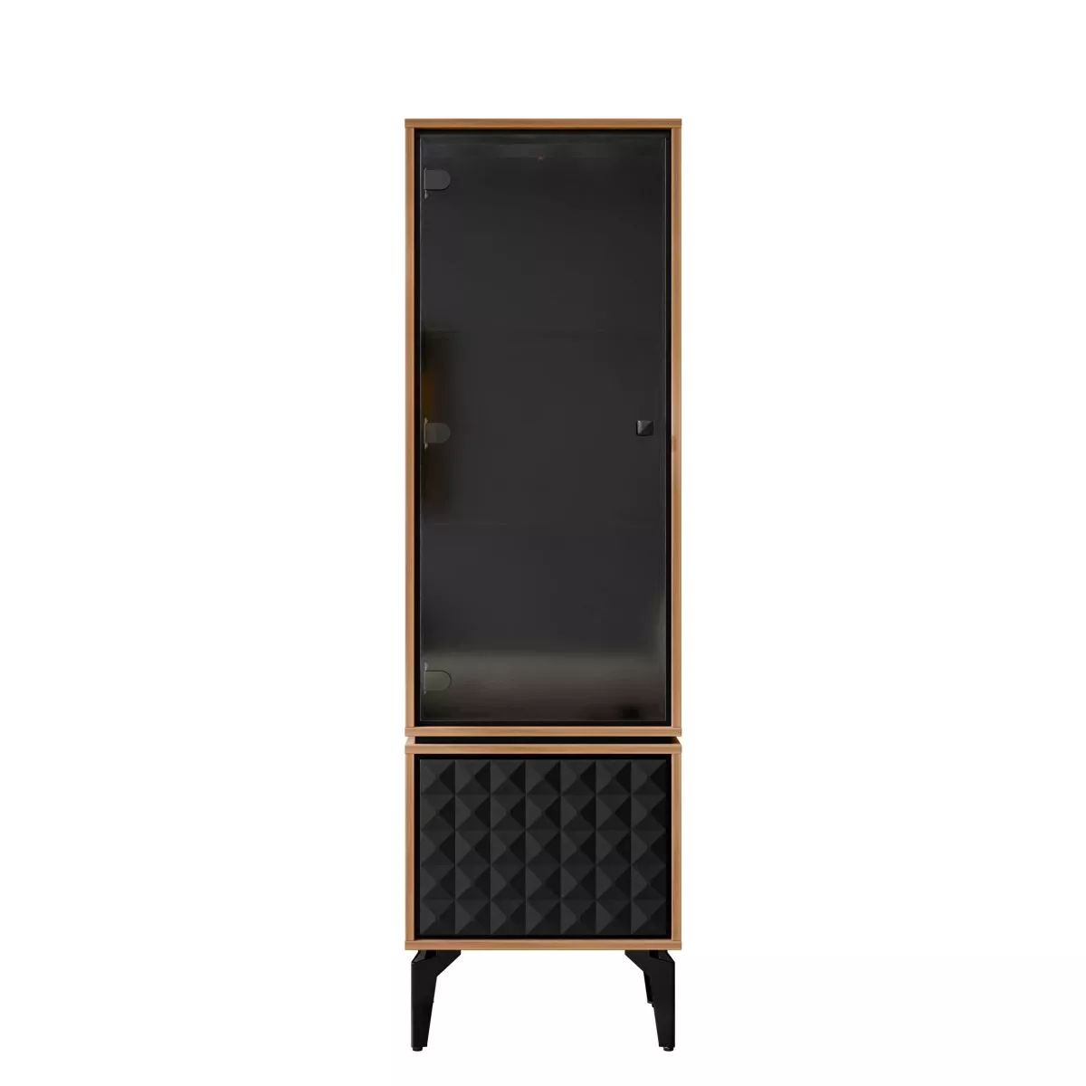 Vysoká prosklená skříňka KALWI - barokní dub jantarový / černá
