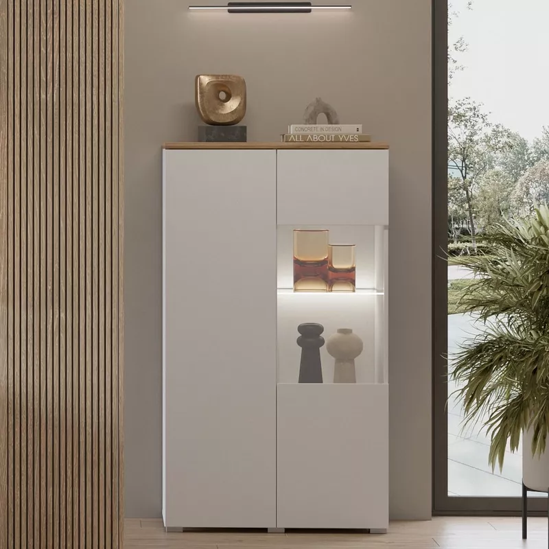 Prosklená vitrína CAPRI - bílá / dub mauvella