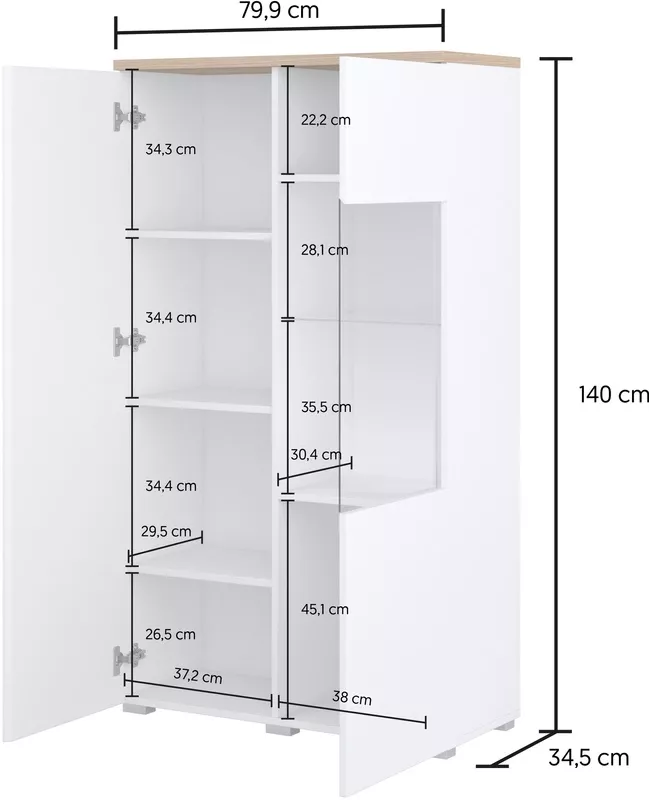 Prosklená vitrína CAPRI svým jednoduchým designem a dekorem dubu skvěle zapadne do všech skandinávských interiérů. Díky proskleným dvířkám vystavíte své oblíbené dekorace a suvenýry. Vitrína je vyrobená z materiálů odolných proti poškození, takže vám bude sloužit mnoho let.