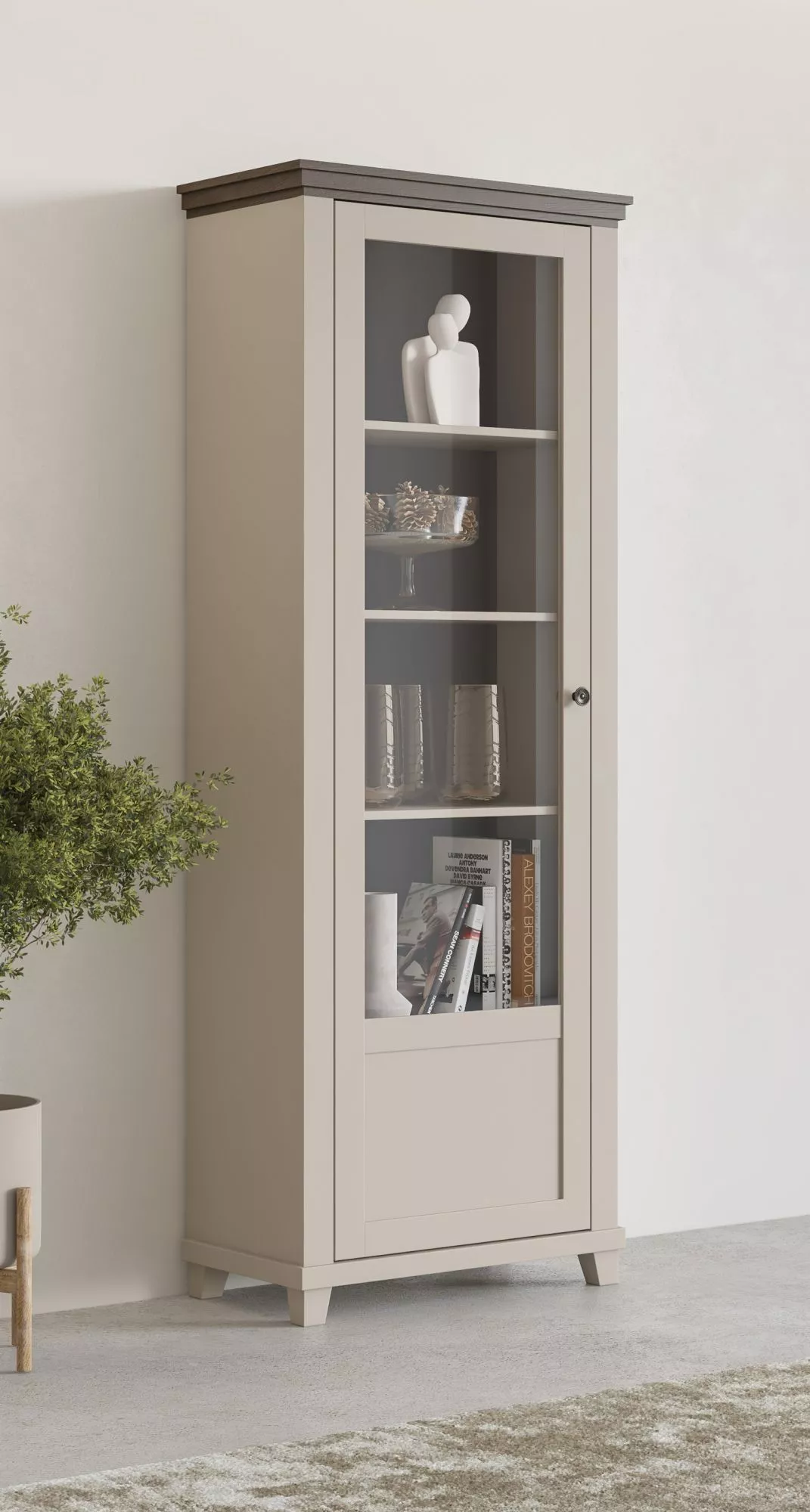 Prosklená vitrína EROL je ideálním kusem nábytku pro vystavení vašich oblíbených dekorací, fotografií nebo nádobí. Vitrína disponuje 4 prostornými policemi. Navíc je vybavená systémem tichého dovírání, což zpříjemní její každodenní používání.