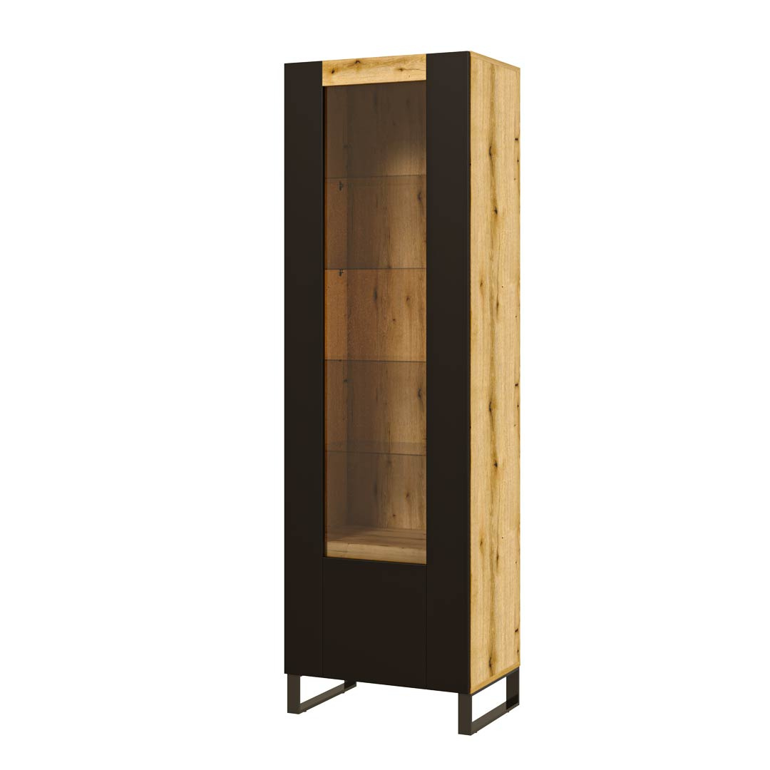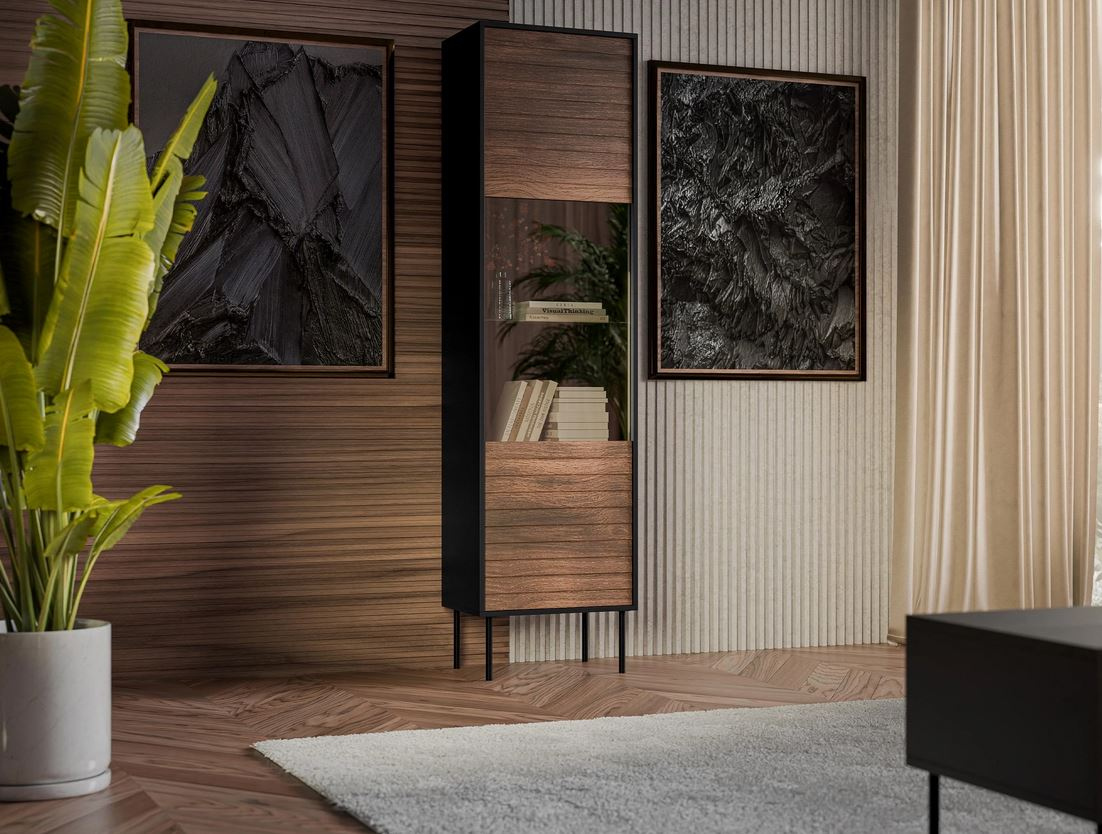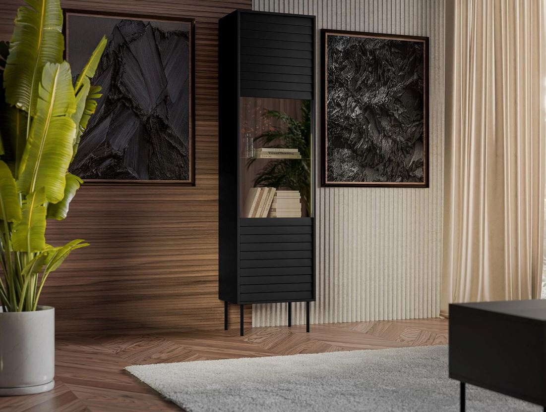 Prosklená skříň Kara je funkční a prostorná vitrína, která se hodí do obývacího pokoje nebo jídelny. Uvnitř vitríny je řada polic, do kterých si můžete uložit talíře, keramiku, vázy nebo dekorační doplňky. Ve spodní části vitríny jsou 3 prostorné zásuvky.