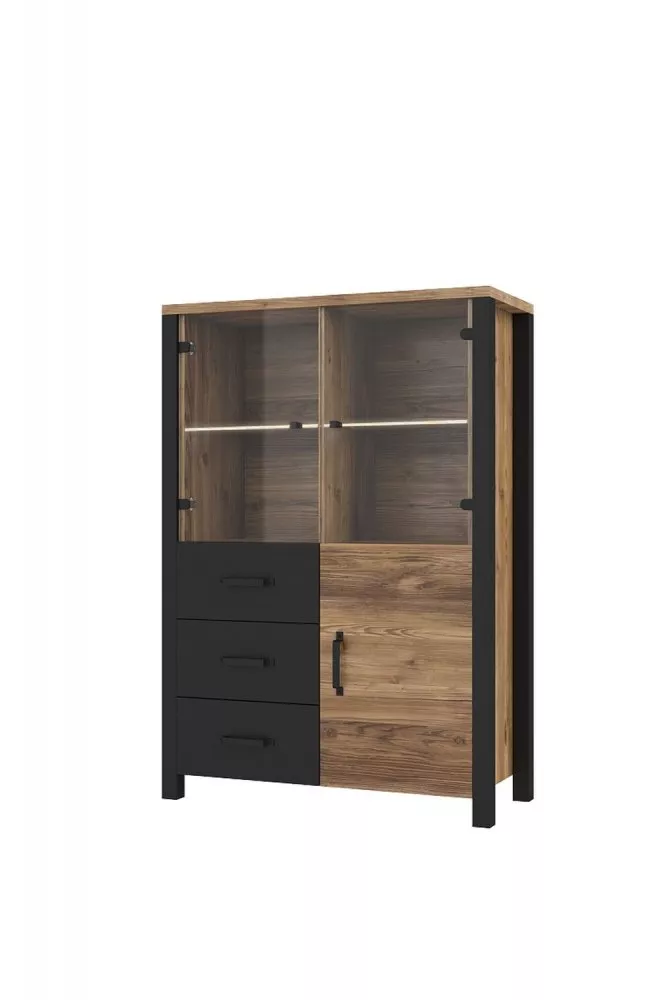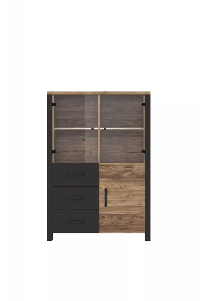 Třídveřová vitrína s šuplíky OKAL - appenzeller / černá