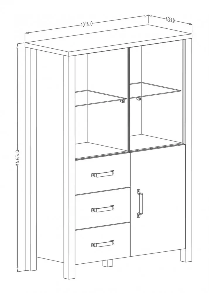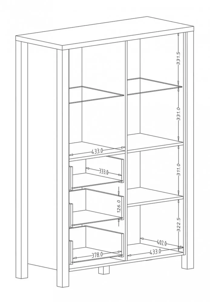 Třídveřová vitrína systému OKAL umožní vystavení nejkrásnějších dekorací a spomínek ve formě fotografií či drobných suvenýrů. Pevná konstrukce prvku založená na odolné vůči poškřábání nábytkové desce, splňuje očekávání i nejnáročnějších zákazníků.