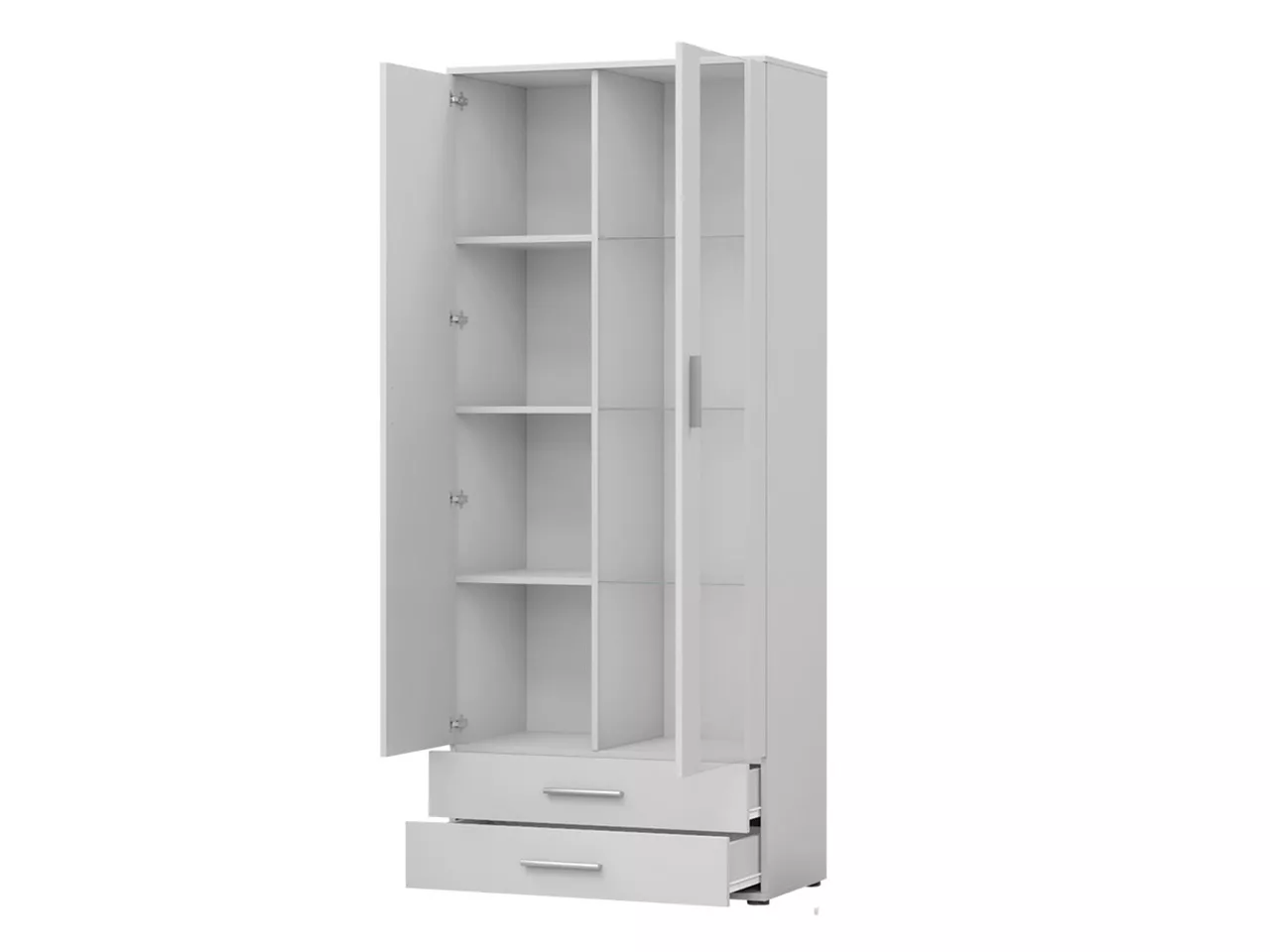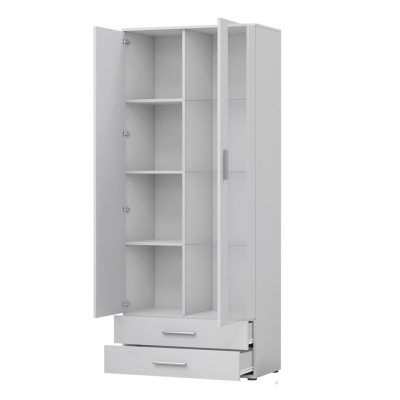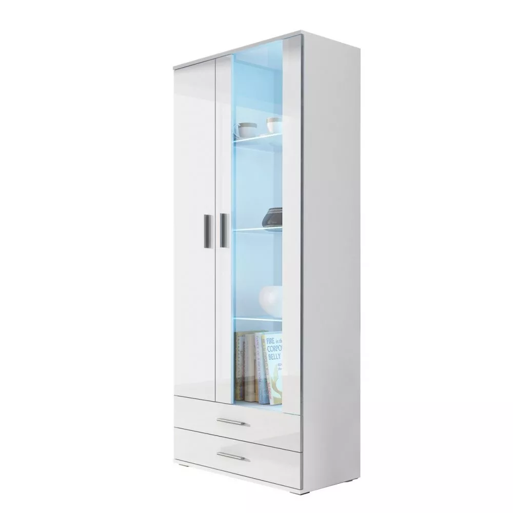 Vysoká vitrína KARA - bílá / lesklá bílá