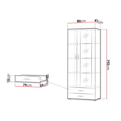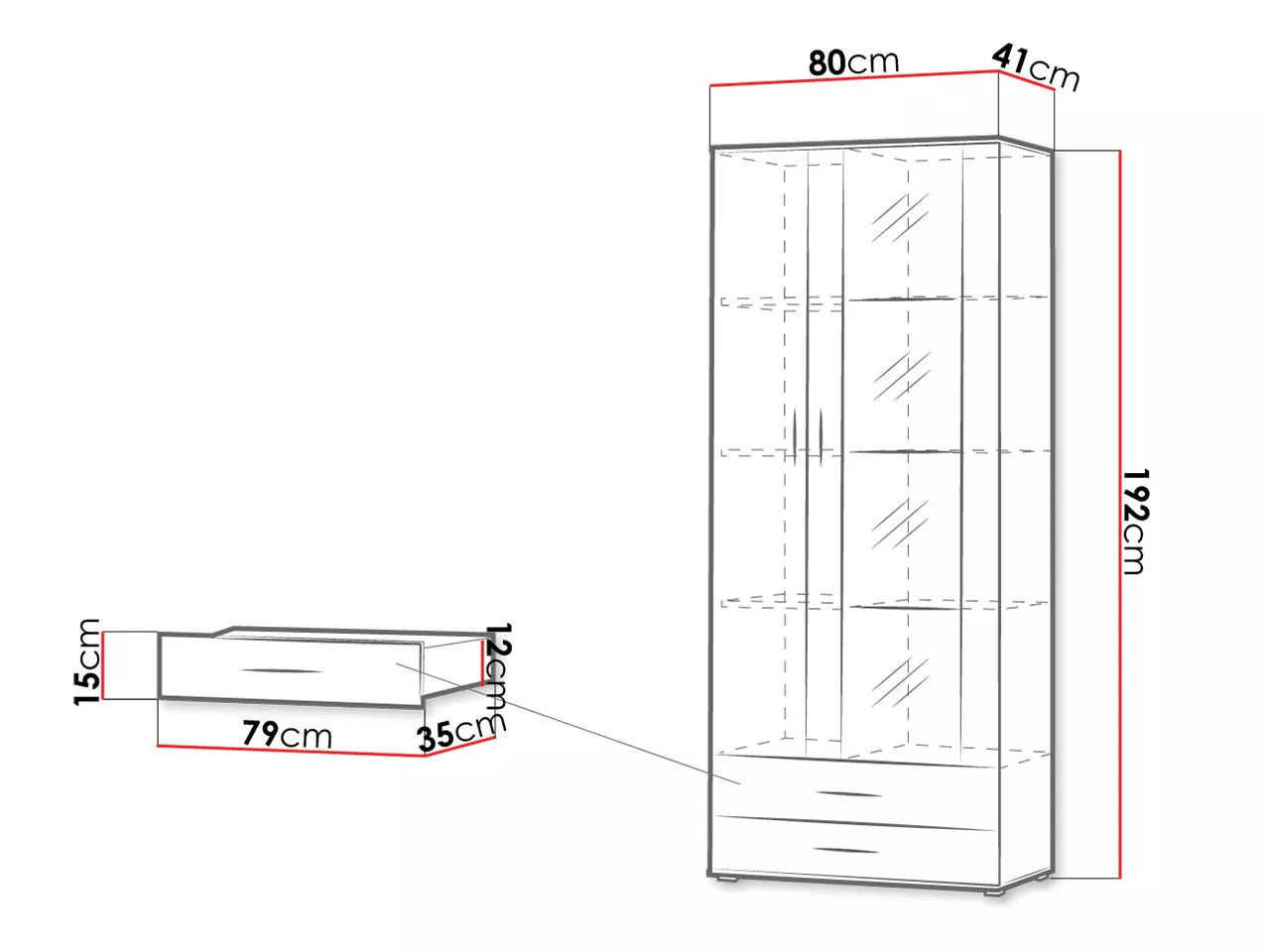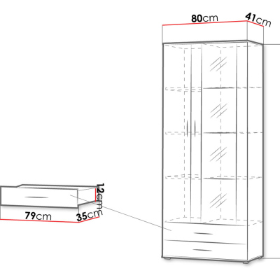 Prosklená vitrína KARA je funkční a prostorná vitrína, která se hodí do obývacího pokoje nebo jídelny. Prosklená část může sloužit k vystavení dekorací, suvenýrů nebo knih. Uzavřená část se hodí pro úschovu ubrusů, nádobí nebo sezónního oblečení. Ve spodní části vitríny jsou také dvě prostorné zásuvky.