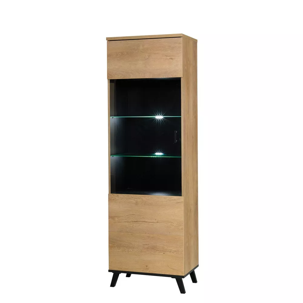 Vysoká vitrína YUNA - dub lefkas / černá, levé provedení