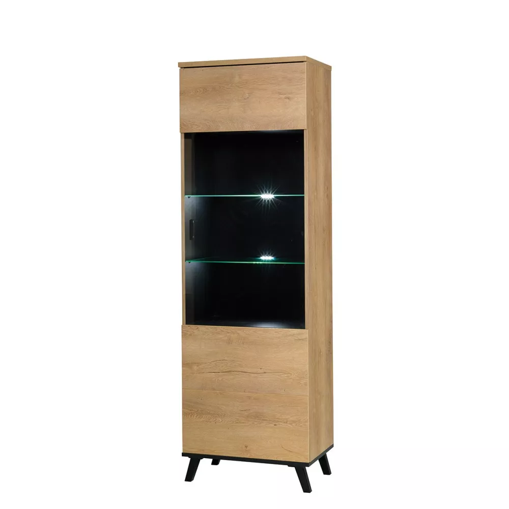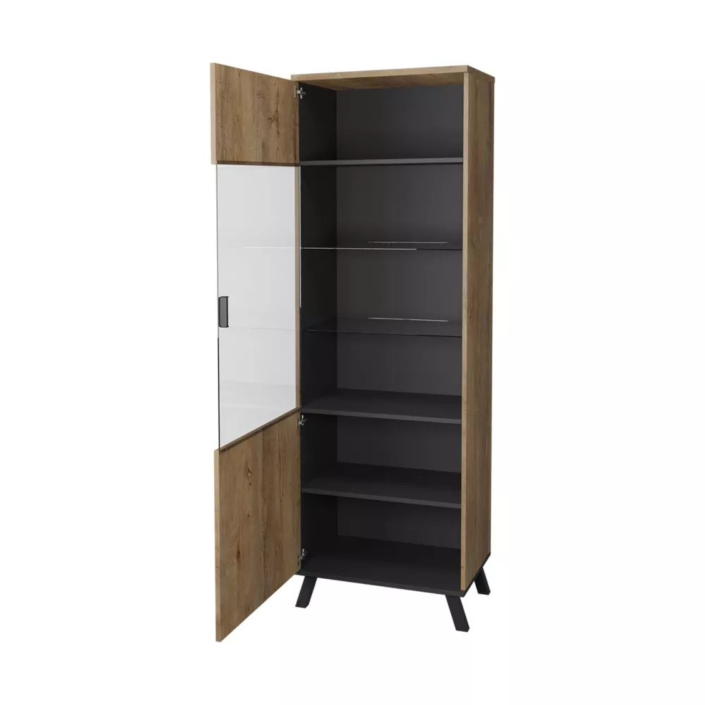 Vysoká vitrína YUNA - dub lefkas / černá, pravé provedení