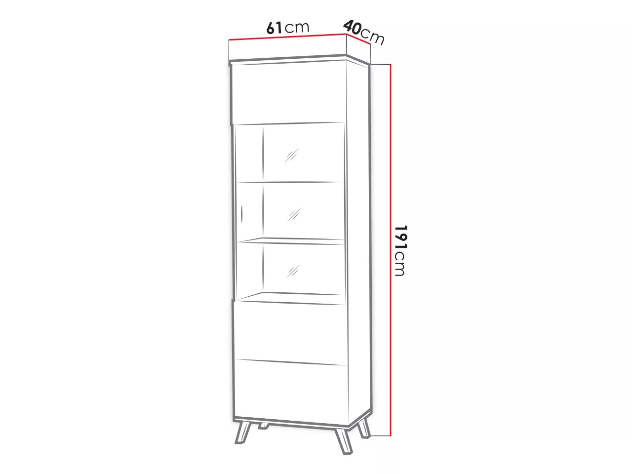 Vysoká vitrína YUNA se postará o originální a funkční uspořádání vašeho obývacího pokoje. Geometrický tvar vitríny je podepřen na stabilních nohách, díky čemuž získává interiér příznivý dojem prostornosti a optického zvětšení. Prosklená i uzavřená část je tvořena hlubokými policemi, které vám umožní vystavit předměty.