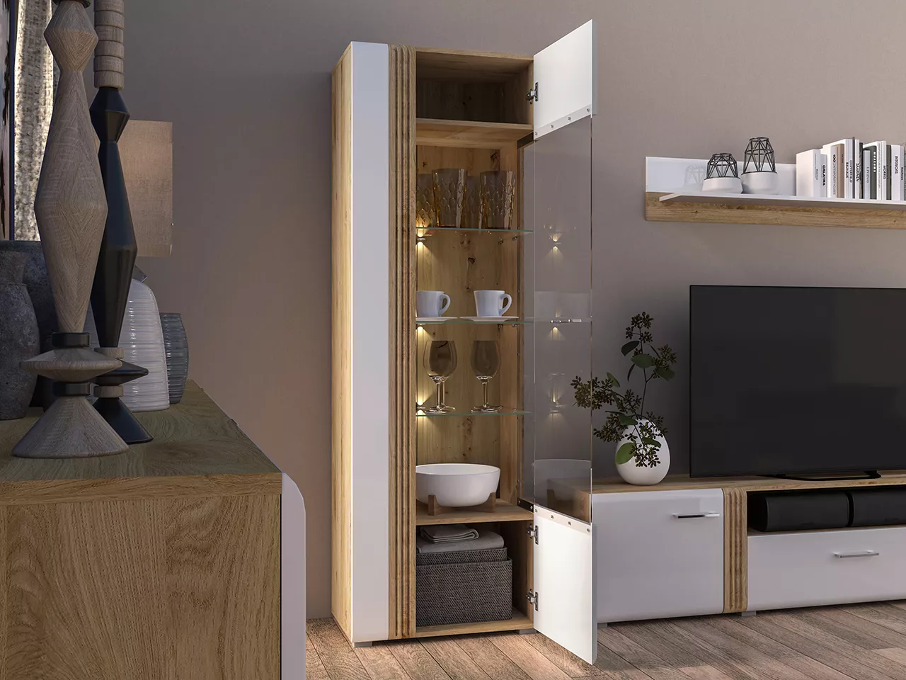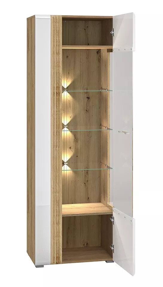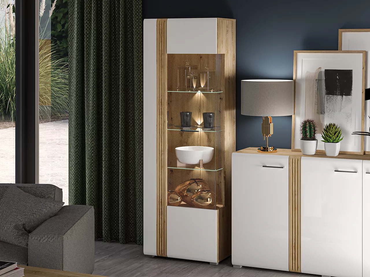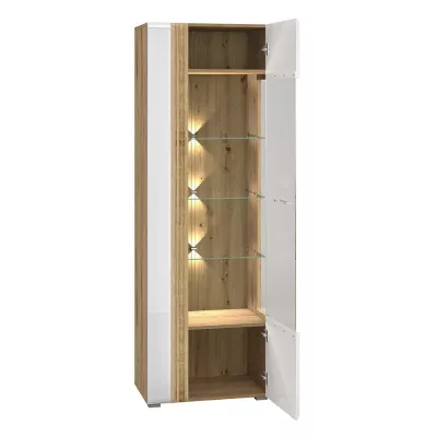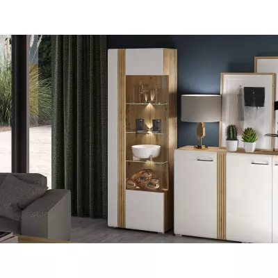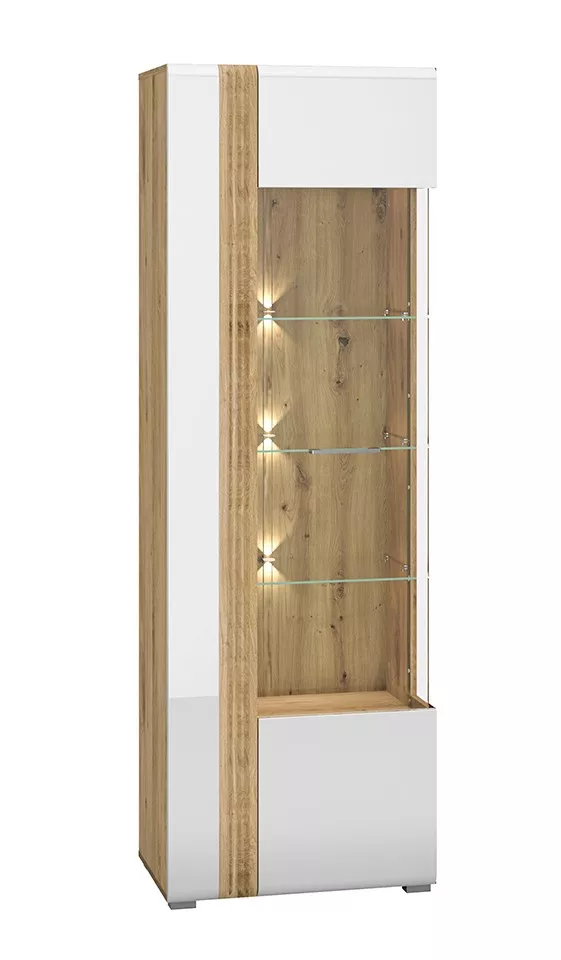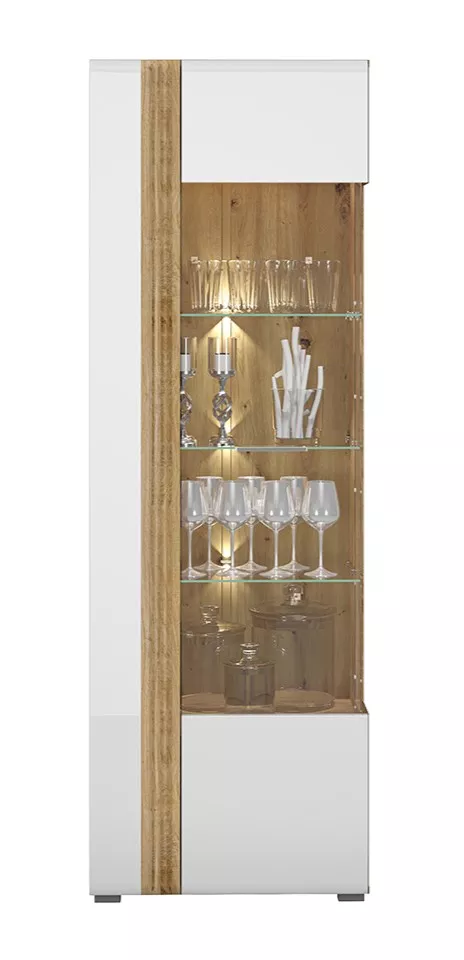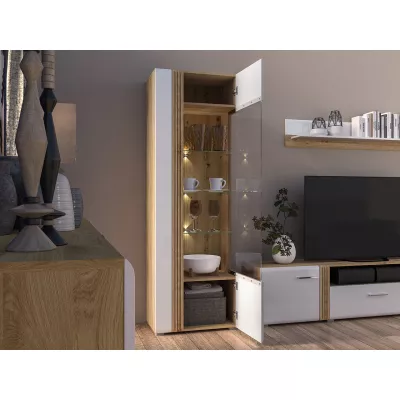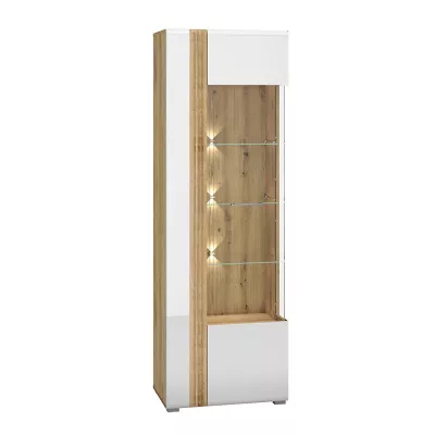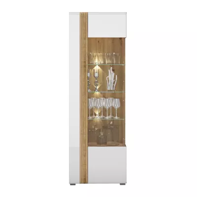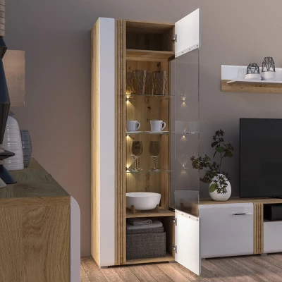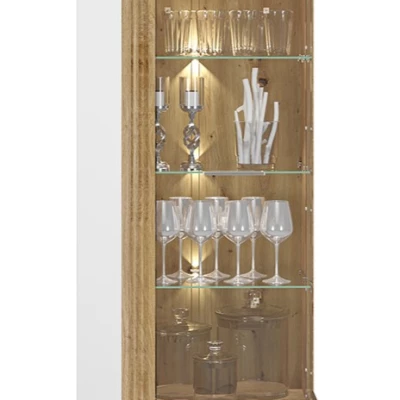 Vitrína s prosklenou částí ALIZA - pravá, dub castello / bílá