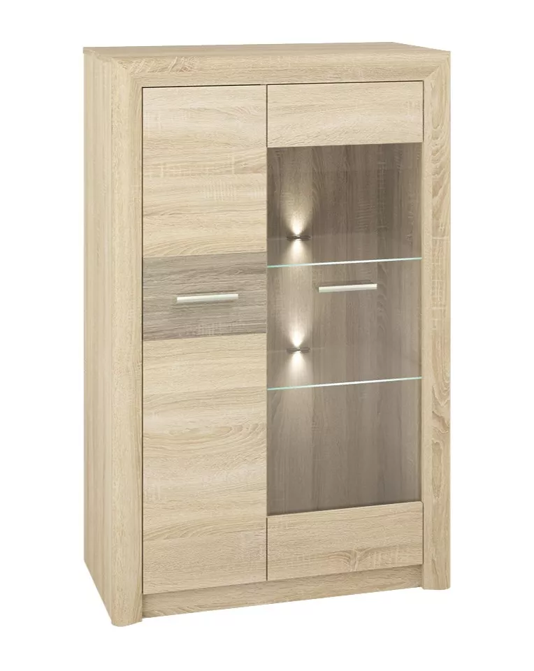 Prosklená vitrína KAELA - světlý dub sonoma / sonoma lanýž
