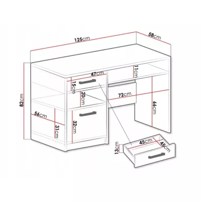 Psací stůl AGNESA se hodí do všech moderních studentských pokojů. Součástí je šuplík a 3 přihrádky.