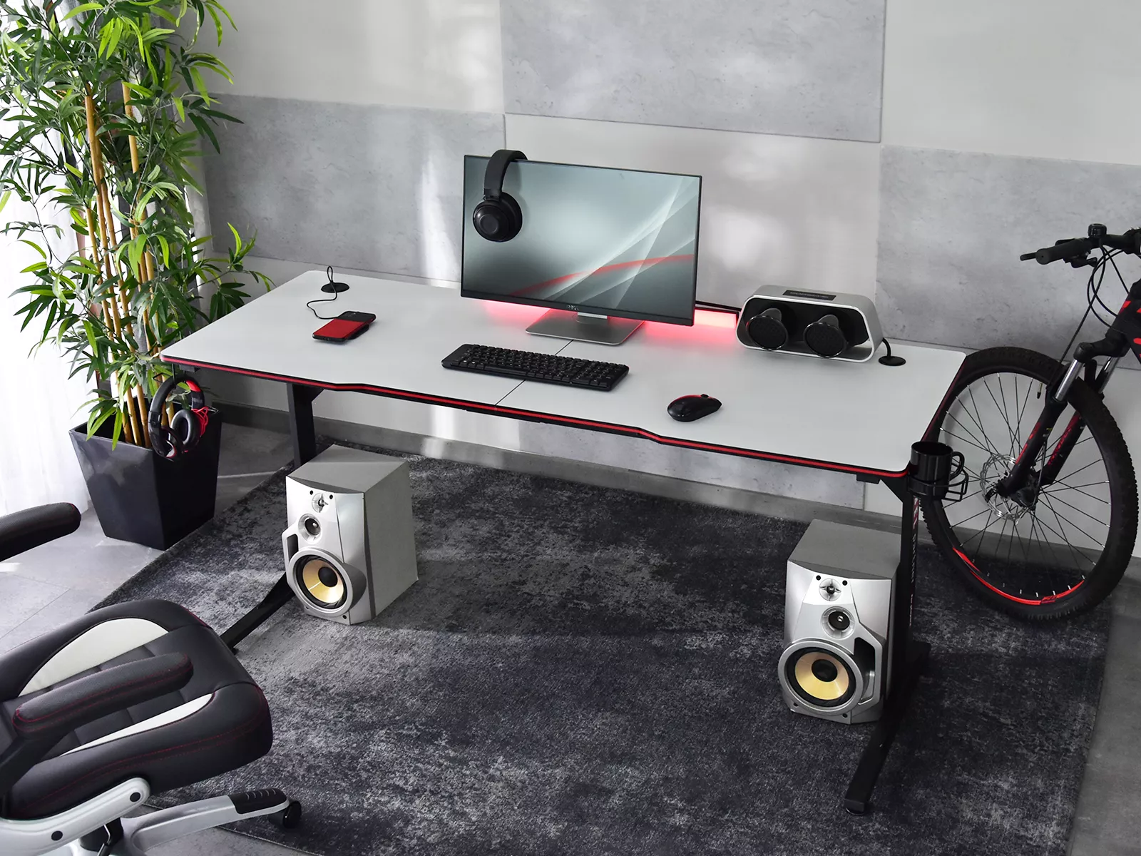 Psací stůl 160 HARO díky promyšlené konstrukci a praktickým prvkům tvoří perfektní prostor nejen pro studium ale i pro hraní počítačových her. Součástí je 3x USB port, otvor pro vývod kabelů, organizér na kabely, úchyt na nápoje a 2x věšák na sluchátka či batoh.