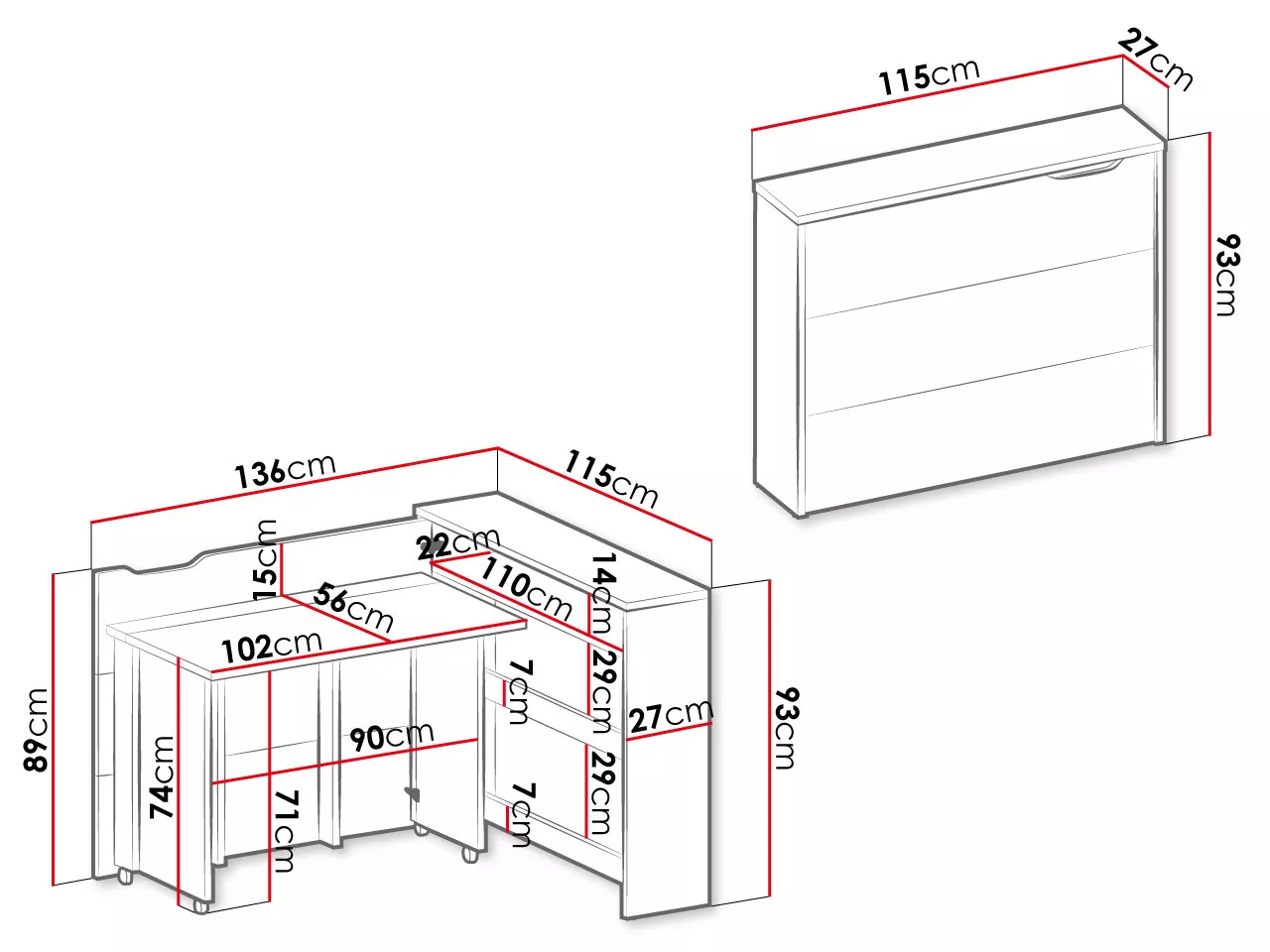 Skládací stůl CELENA je funkční řešení, které umožňuje optimální využití prostoru a zajišťuje pohodlnou práci. Jednou z hlavních výhod psacího stolu je skládací horní deska, díky níž lze stůl snadno rozložit a poskytnout tak větší pracovní plochu. Stůl je navíc vybaven úložným prostorem, který umožňuje ukládat a organizovat kancelářské doplňky, dokumenty či knihy.