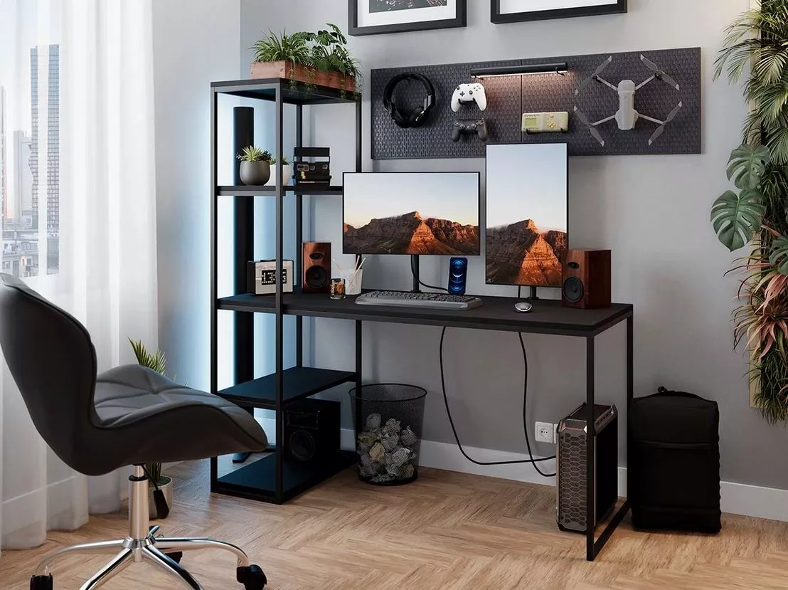 Psací stůl AZUSA je navržen s ohledem na funkčnost a komfort při používání. Velká plocha pracovní desky poskytuje nejenom dostatečný prostor pro práci, ale zároveň je odolná vůči poškrábání. Police umožňují organizaci a snadný přístup k dokumentům. Stůl navíc díky svému stylovému vzhledu dodává interiéru jedinečný industriální charakter.