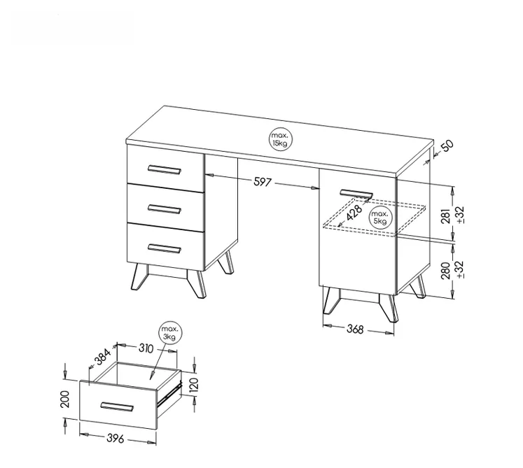 Psací stůl BUTNER vytvoří pohodlné a funkční pracovní místo. 3 šuplíky a skříňka zajistí dostatek úložného prostoru. Prostorná pracovní deska usnadní práci i studium. Masivní nohy a teplý dekor dubu dodají stabilitu i styl.