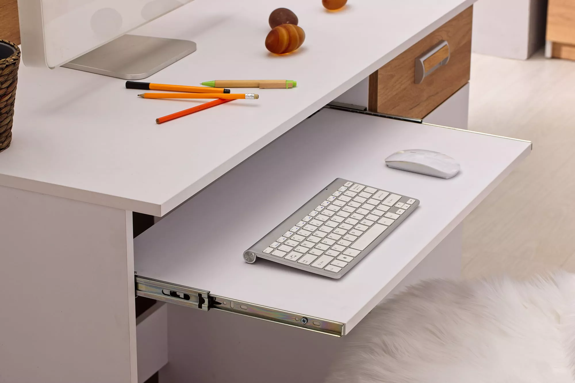Psací stůl CEDAR nabízí praktické řešení pro maximální využití prostoru, což je ideální i pro menší pokoje. Díky šuplíku a uzavřené skříňce umožňuje efektivní organizaci pracovního prostředí.