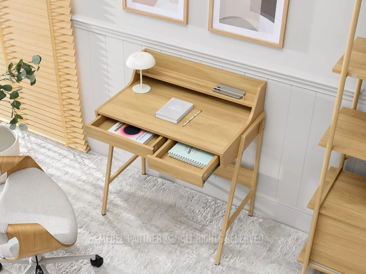 Minimalistický psací stůl RENO díky svým rozměrům vyplní každý menší prostor. Disponuje policovým nástavcem, na který si můžete odložit menší předměty.