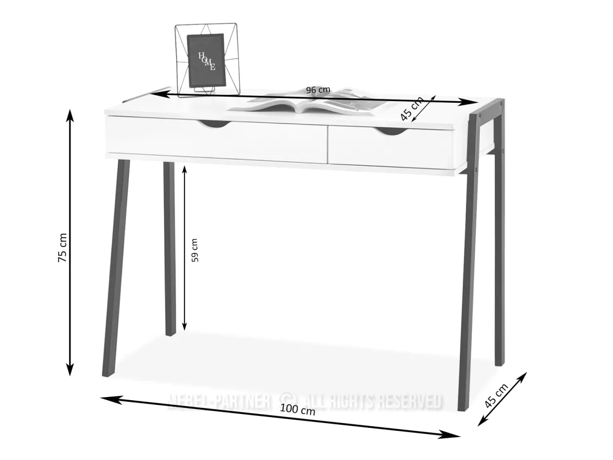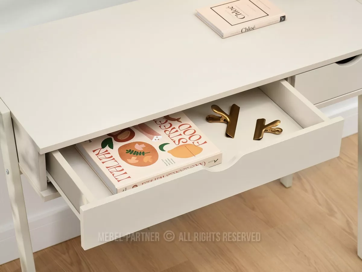 Psací stůl ERCHIS nabízí 2 praktické šuplíky pro uložení veškerých kancelářských potřeb. Stabilitu stolu zajistí kovová konstrukce.