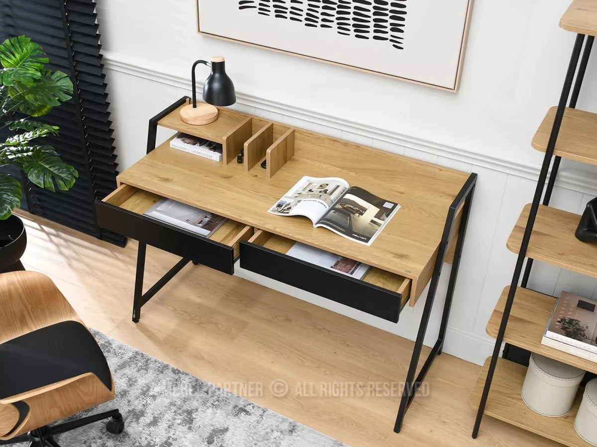 Široký psací stůl BATO - dub / černý