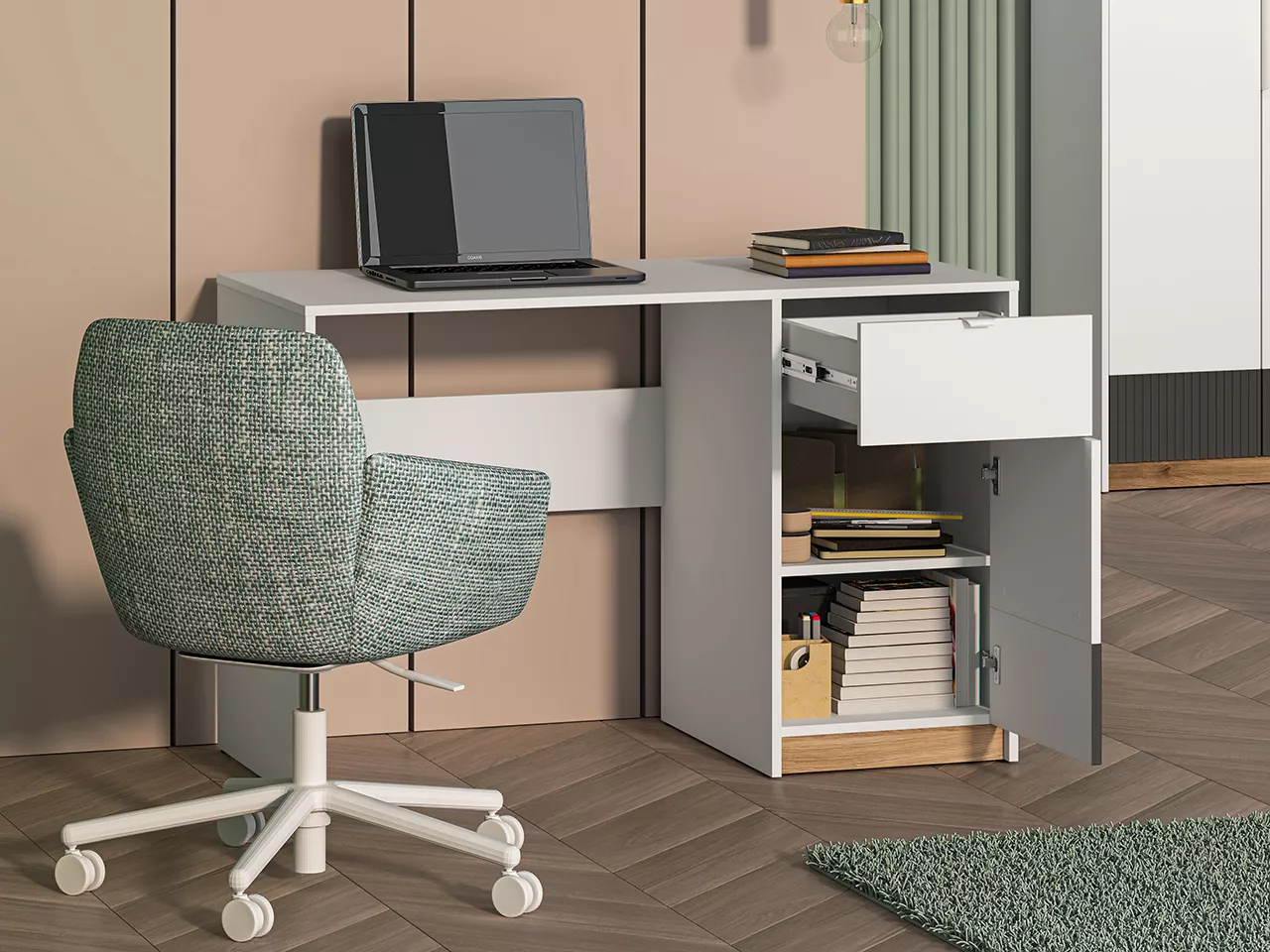 Psací stůl ARANA se hodí do všech moderních studentských pokojů. Psací stůl nabízí dostatek úložného prostoru v podobě 1 police a 1 šuplíku s plnovýsuvem a tichým dovíráním.