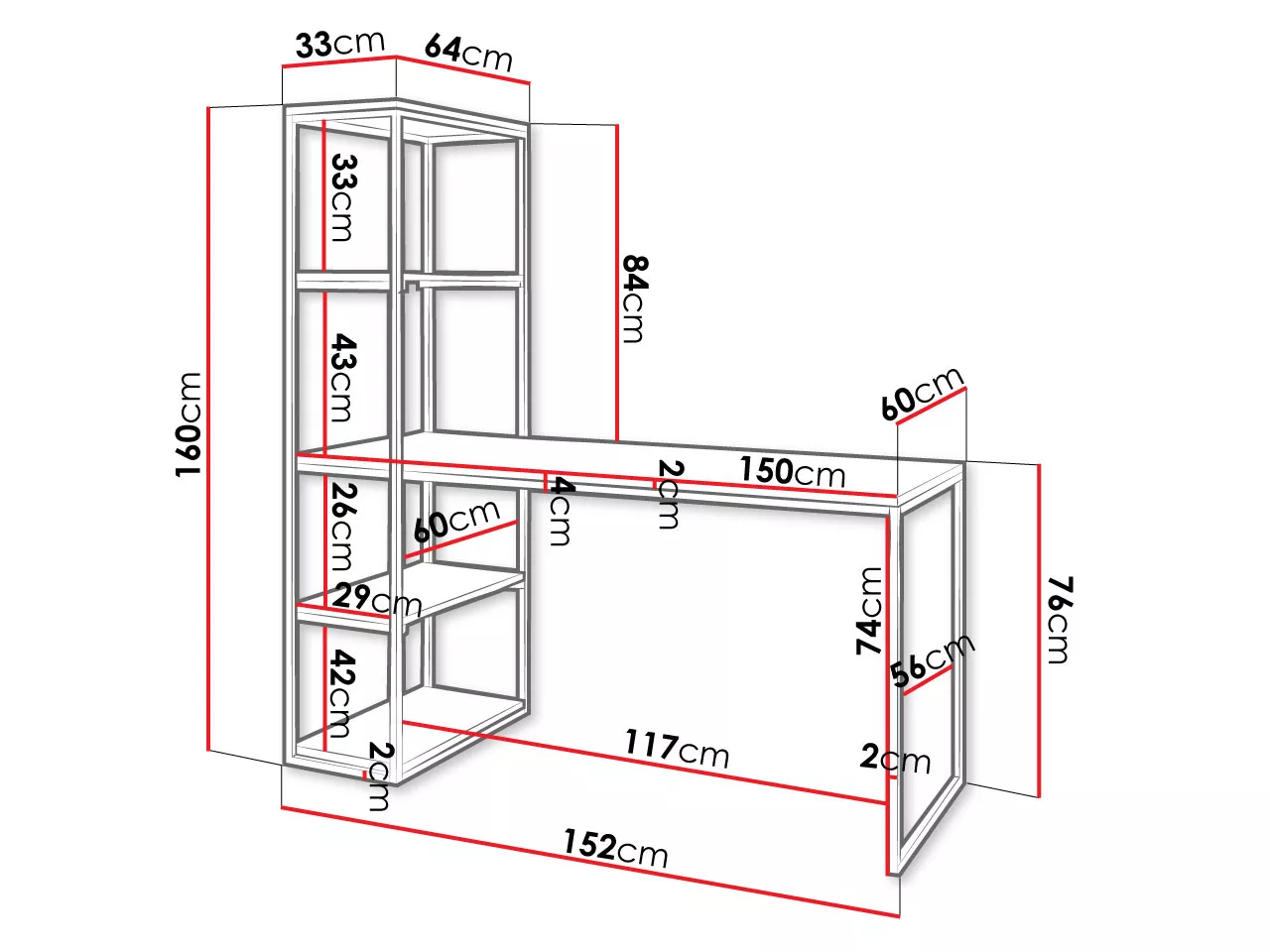 Psací stůl AZUSA je navržen s ohledem na funkčnost a komfort při používání. Velká plocha pracovní desky poskytuje nejenom dostatečný prostor pro práci, ale zároveň je odolná vůči poškrábání. Police umožňují organizaci a snadný přístup k dokumentům. Stůl navíc díky svému stylovému vzhledu dodává interiéru jedinečný industriální charakter.