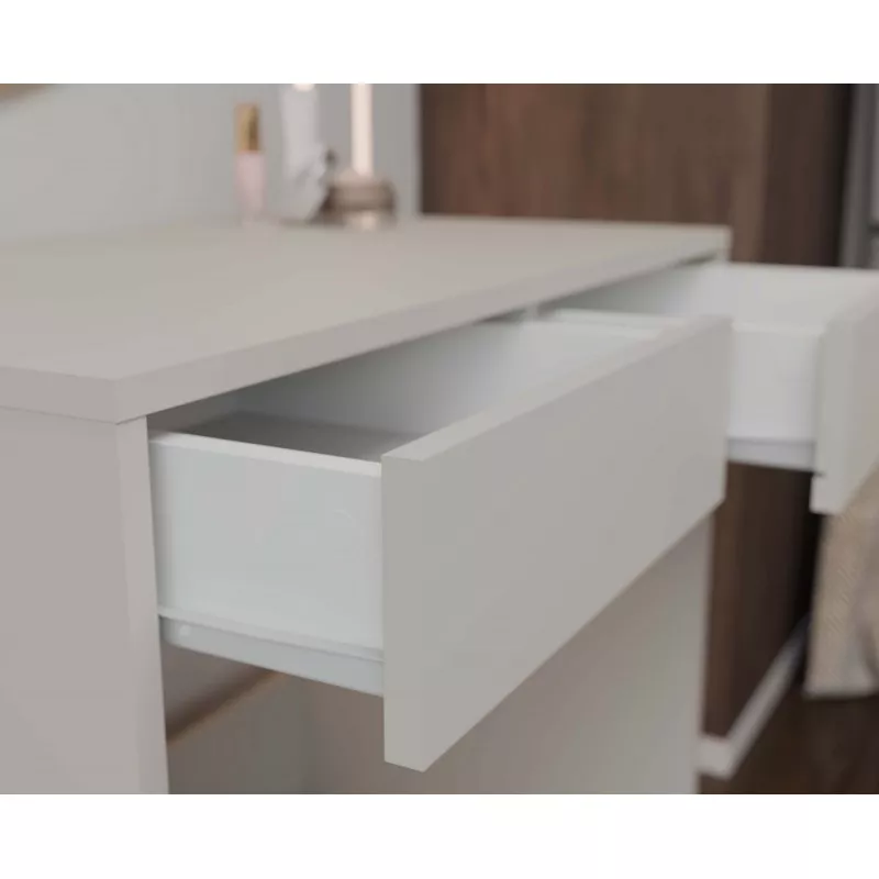 Úzký psací stůl HOOVER 1 vyniká svým moderním designem a funkčností. 2 prostorné zásuvky umožňují uložení drobných předmětů, dokumentů nebo kancelářských potřeb. Díky kompaktním rozměrům se stůl perfektně hodí i do menších místností, a zároveň nabízí pohodlný prostor pro práci a úložný prostor.