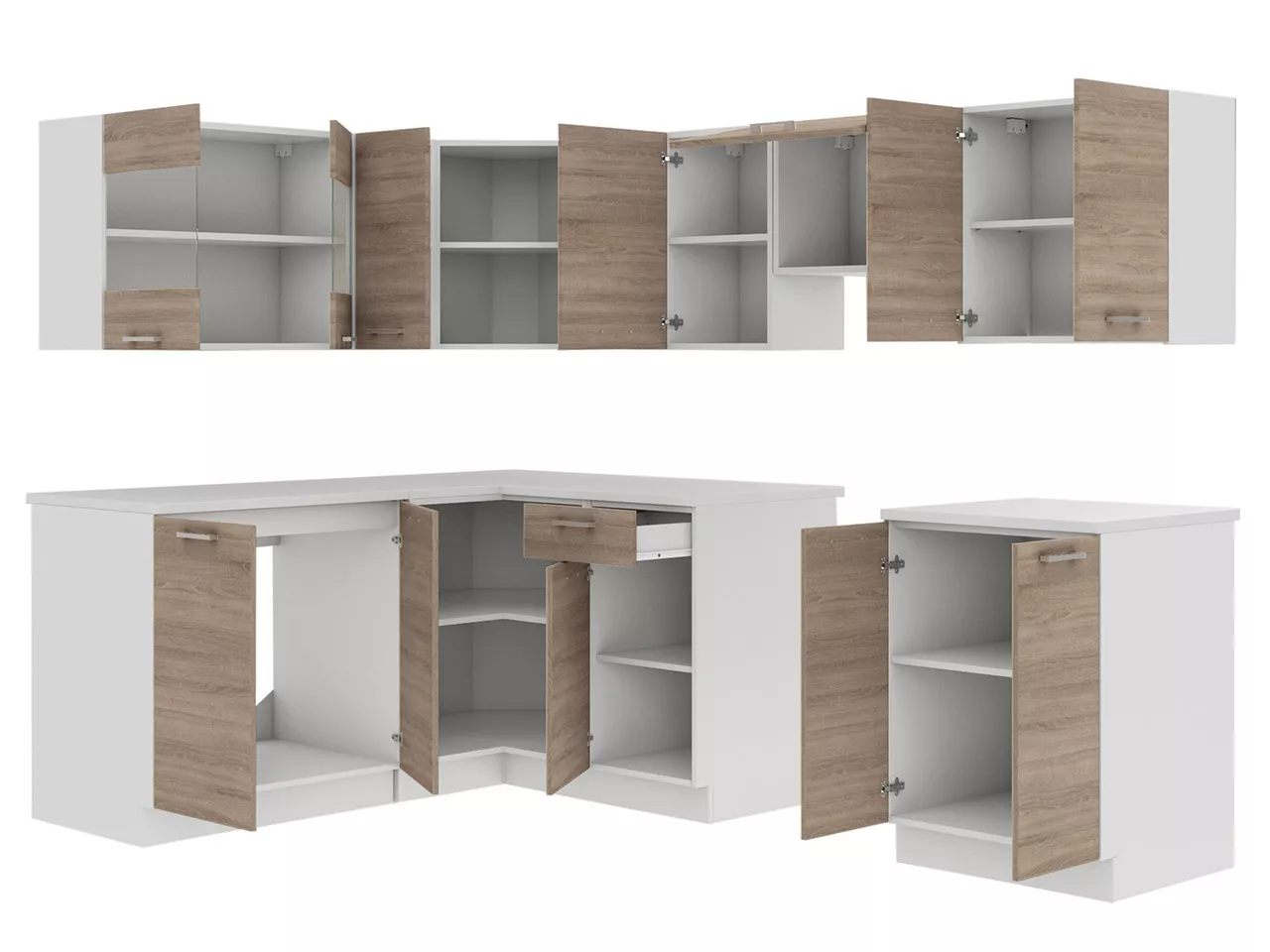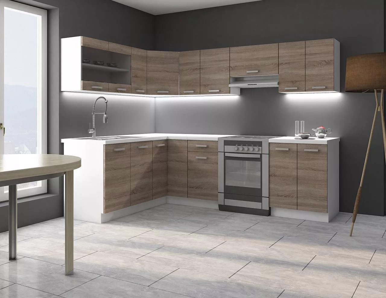 Rohová kuchyně LIAN 2 byla navržena tak, aby dokonale ladila s moderními interiéry a poskytovala dostatečné množství úložného prostoru. Promyšlená kombinace horních a spodních skříněk vám dává jistotu, že veškeré příslušenství potřebné k vaření budete mít na dosah ruky.