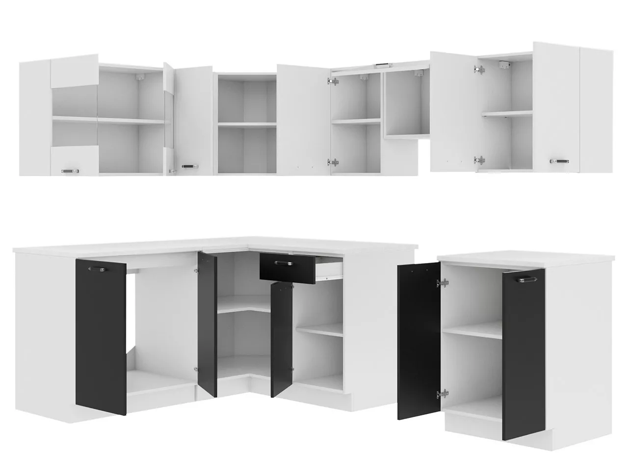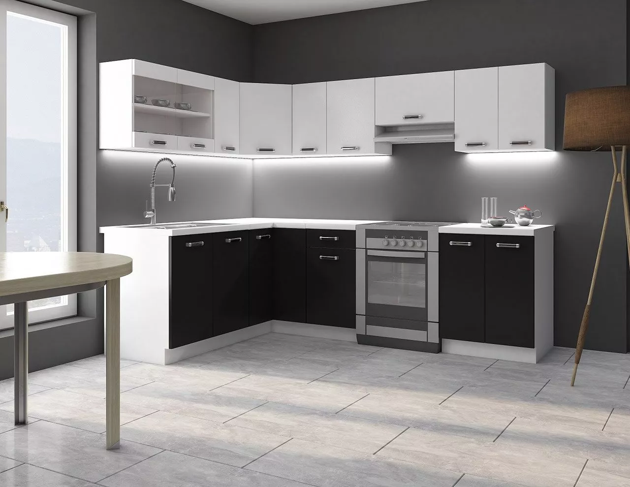 Moderní rohová kuchyně 249/169 cm s LED osvětlením TAO 3 - černá / bílá