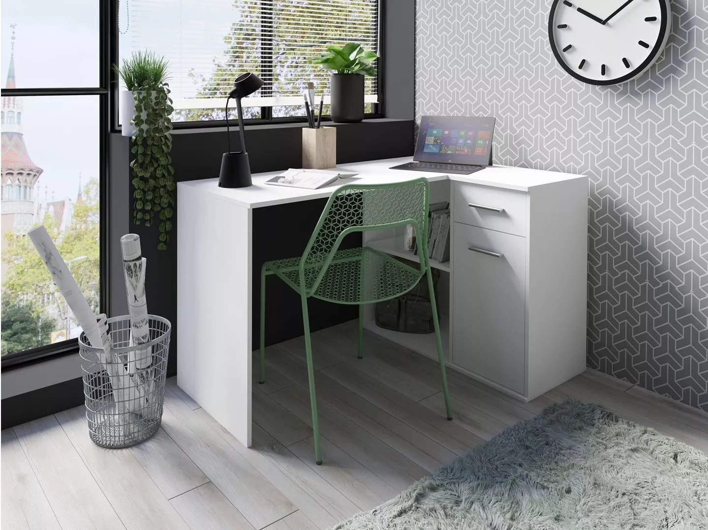 Pořiďte si rohový psací stůl ACACIAS – chytré řešení pro efektivní práci i studium. Prostorná zásuvka, uzavřená skříňka a otevřené police nabízejí dostatek místa na vše potřebné. Díky rohovému tvaru skvěle využije i menší prostor.