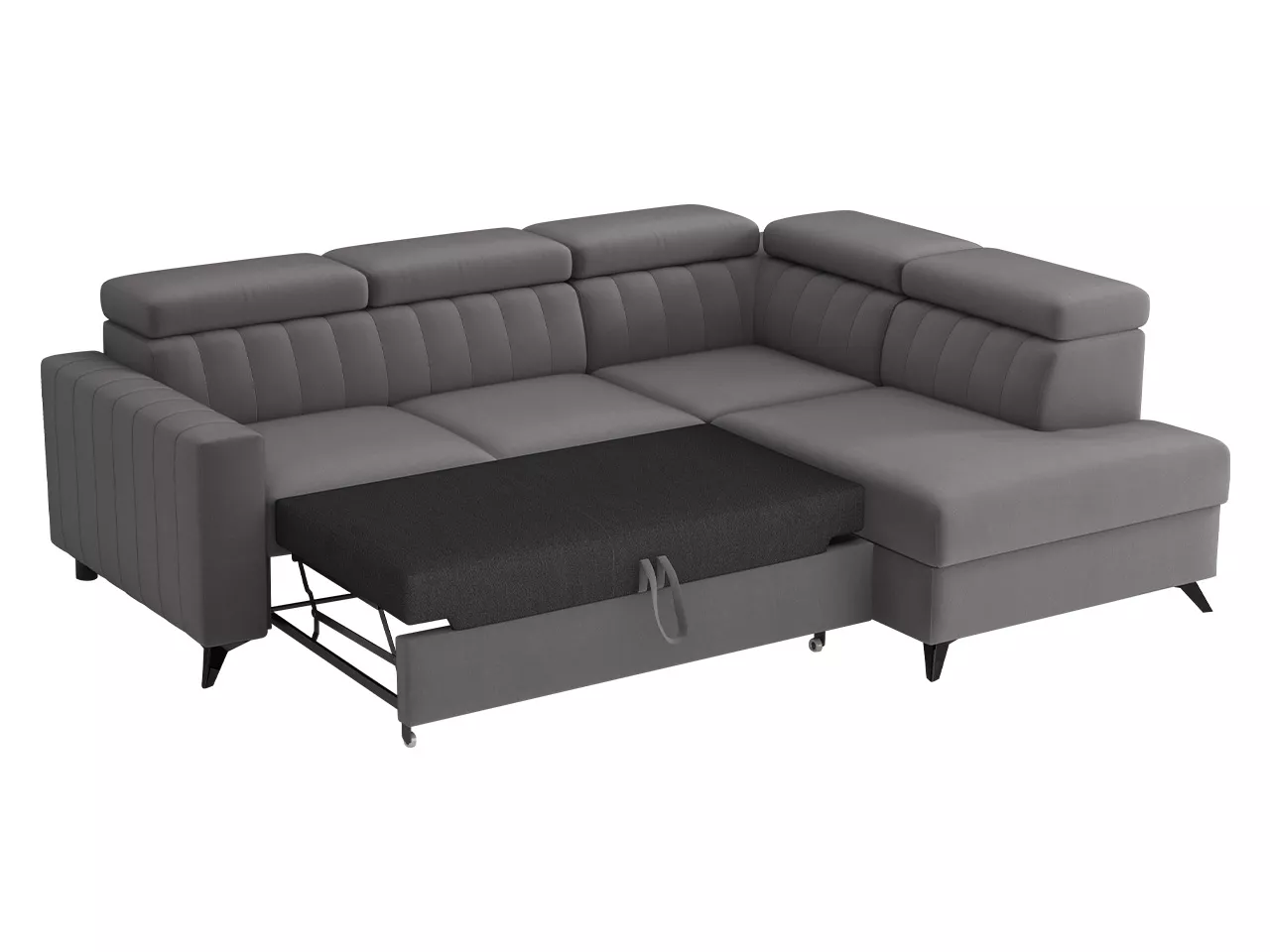 Moderní rohová sedačka KINU je ideálním místem pro relaxaci. Díky funkci rozkládání nabízí spací lůžko o rozměrech 133x198 cm, které je vhodné i pro každodenní spaní. Polohovatelné opěrky hlavy zajišťují lepší podporu krční páteře a snižují napětí svalů, což přináší maximální pohodlí. Nechybí ani praktický úložný prostor, který pomáhá udržet pořádek v místnosti.