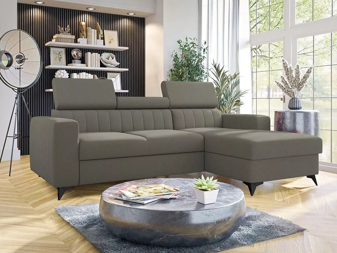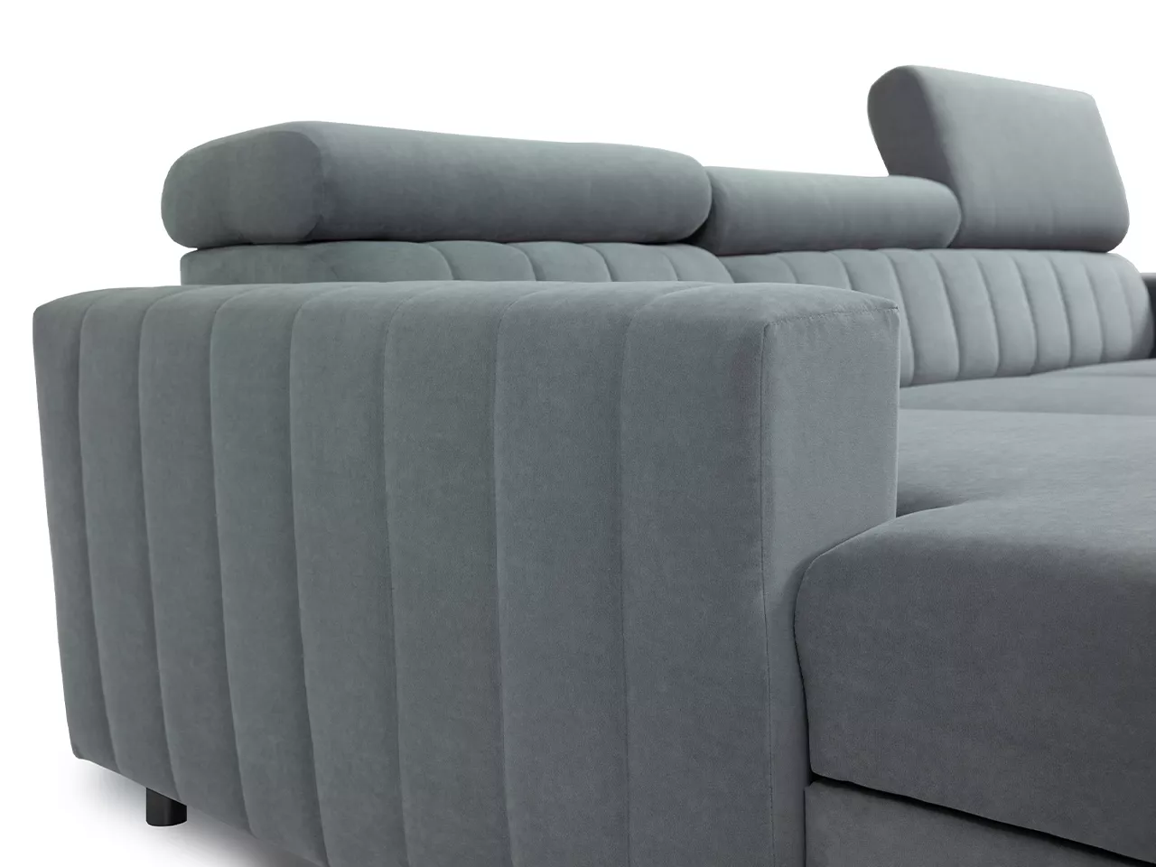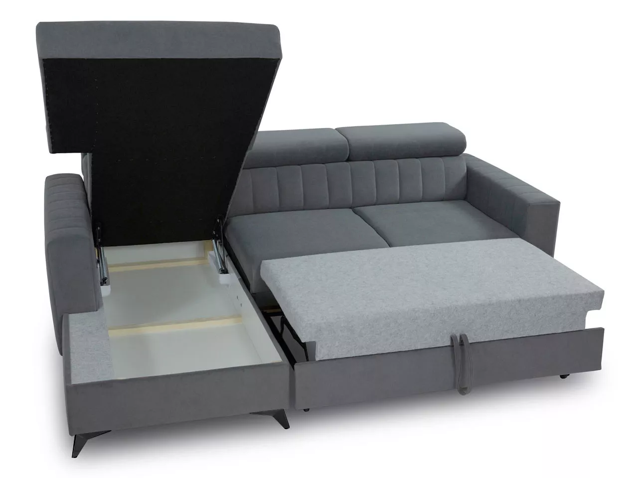 Vychutnejte si dokonalý relax s rohovou sedačkou KINU. Předností sedačky je nejen její funkčnost, ale i moderní design, který podtrhují kovové nohy a dekorativní kolmé prošívání. Díky funkci rozkládání na lůžko o rozměrech 133x198 cm je ideální i pro každodenní spaní. Polohovatelné opěrky hlavy poskytují maximální pohodlí při relaxaci, zatímco úložný prostor zajistí pořádek v místnosti.