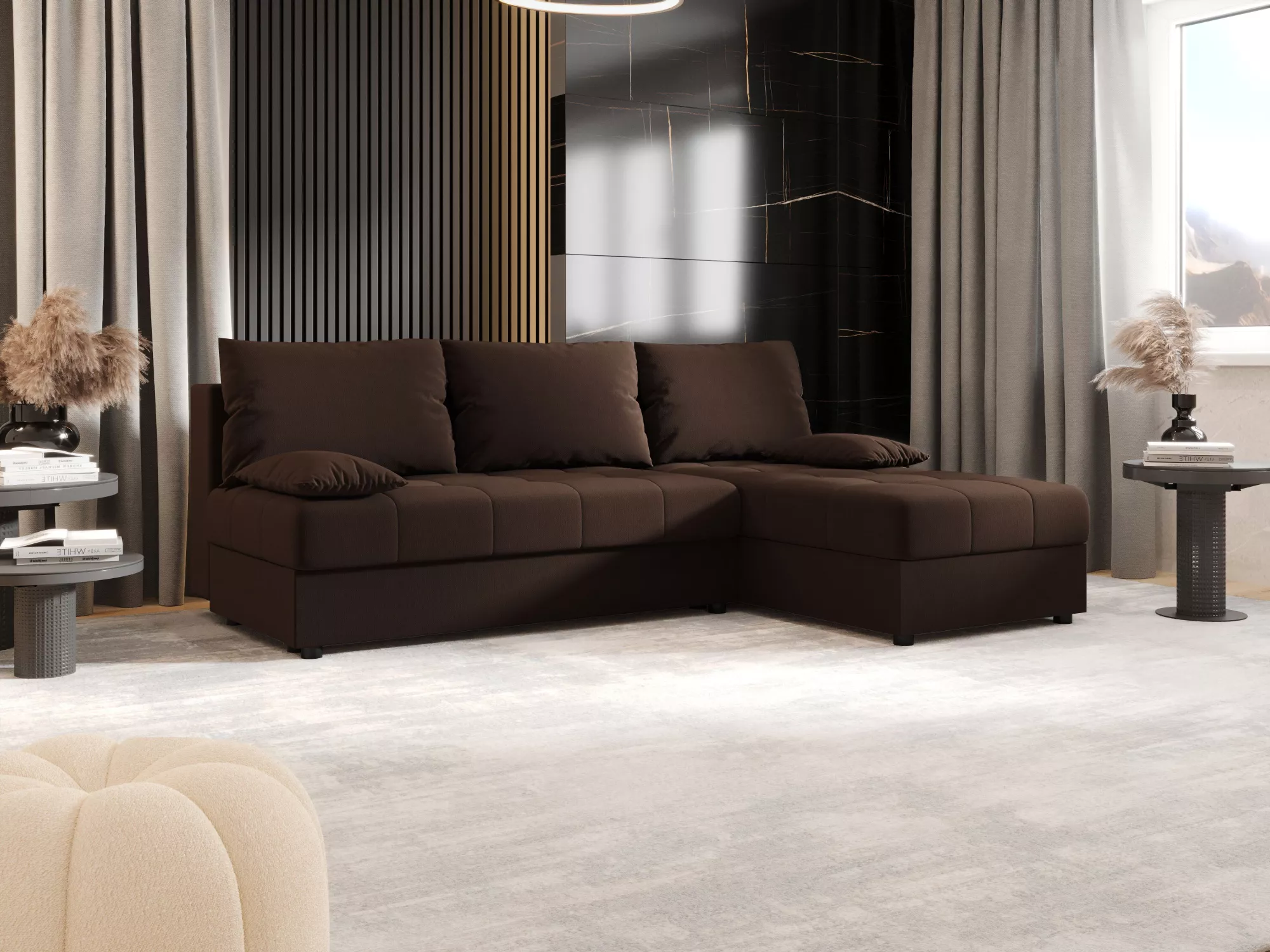 Rozkládací rohová sedačka ADELINDE - tmavě hnědá, pravý roh