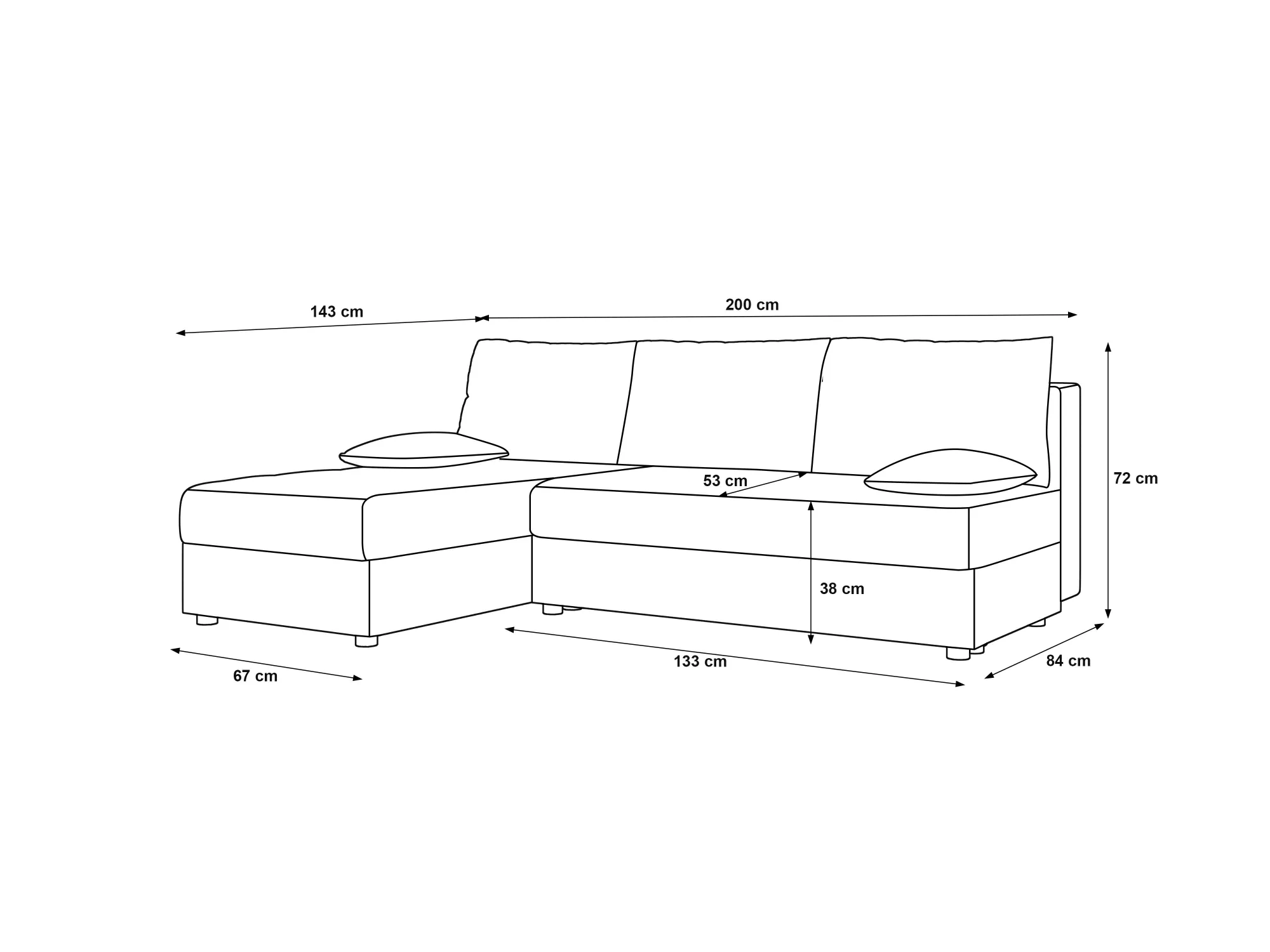 Rozkládací rohová sedačka ADELINDE má opěradlo tvořené volně loženými polštáři, což zvýší komfort používání a zpříjemní každodenní chvíle odpočinku. Disponuje rozkládací funkcí na lůžko o rozměrech 130x200 cm a nechybí ani praktický úložný prostor pro uložení sezónního oblečení nebo lůžkovin.