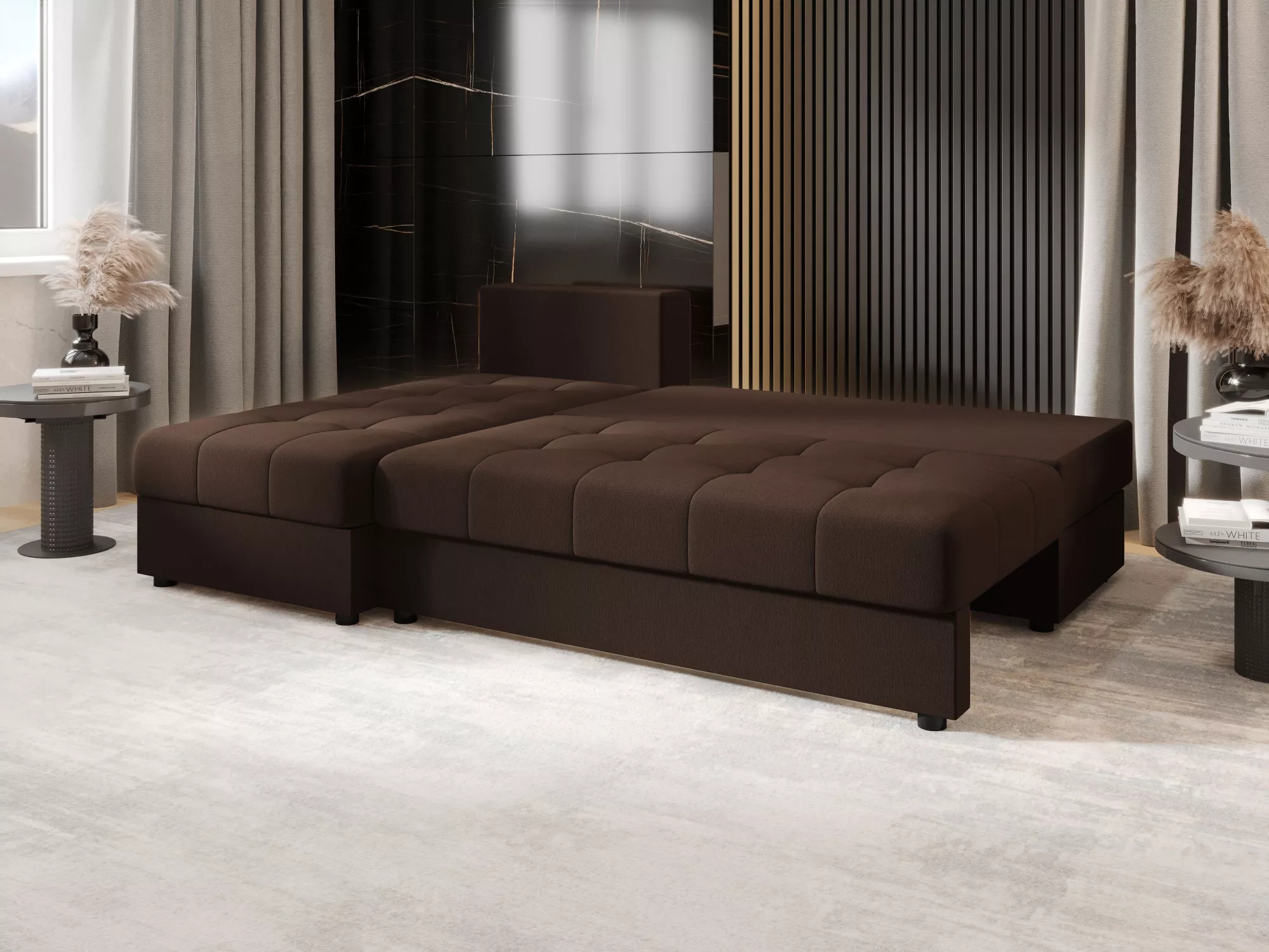 Rozkládací rohová sedačka ADELINDE - tmavě hnědá, levý roh