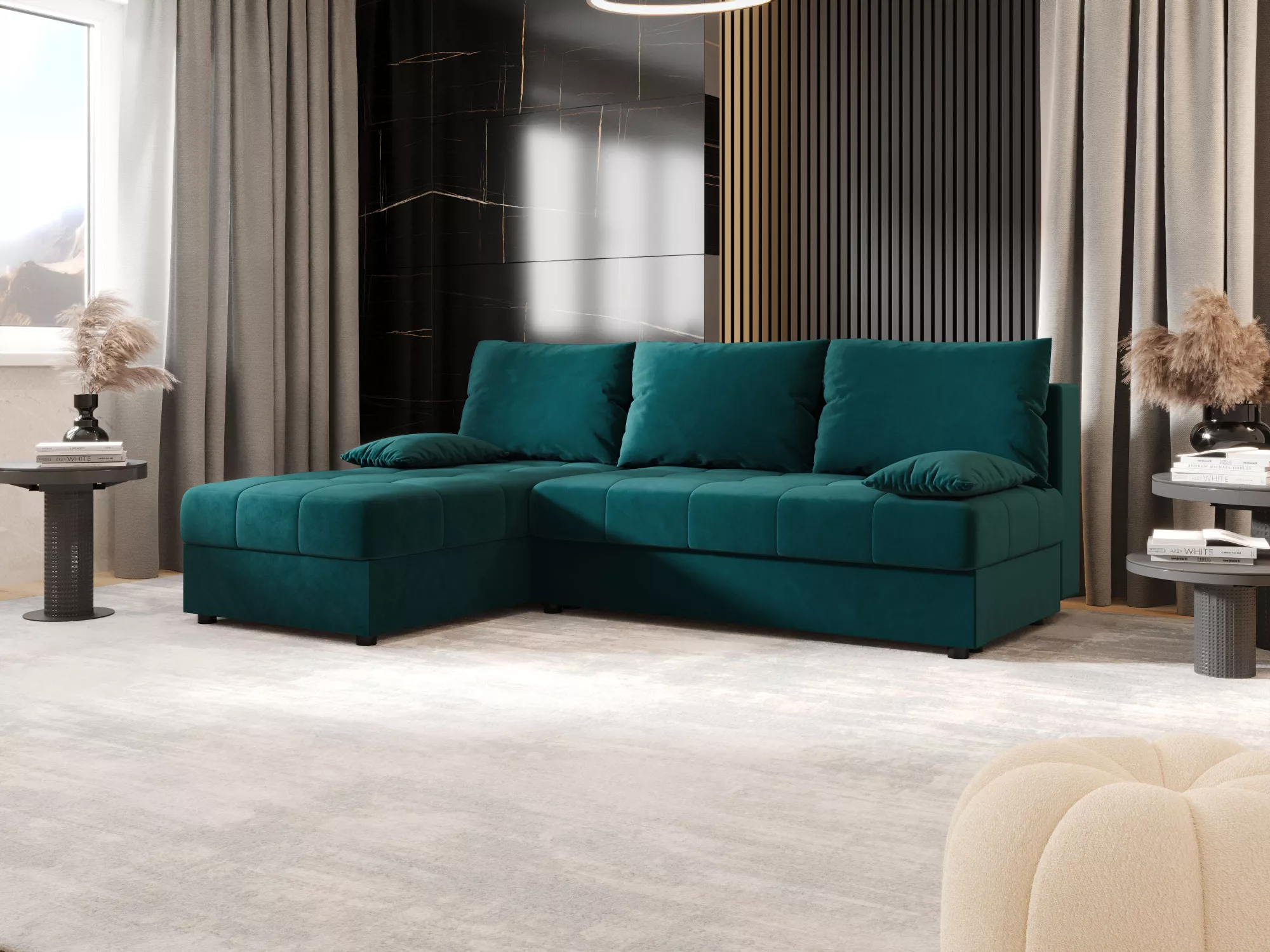 Rozkládací rohová sedačka ADELINDE - petrolejová, levý roh