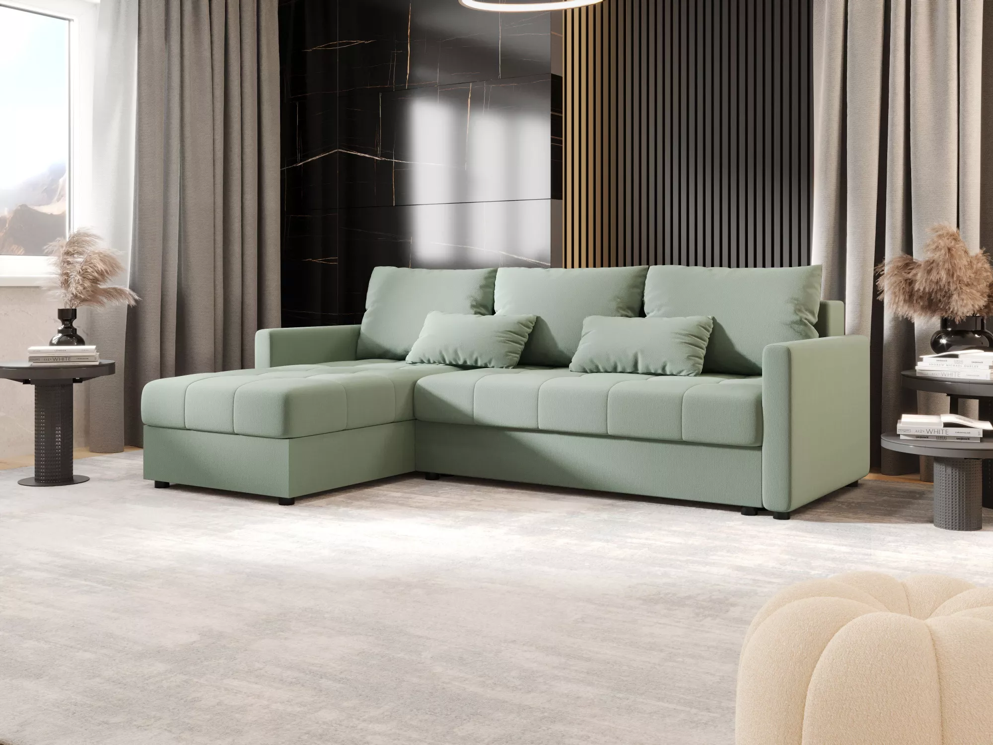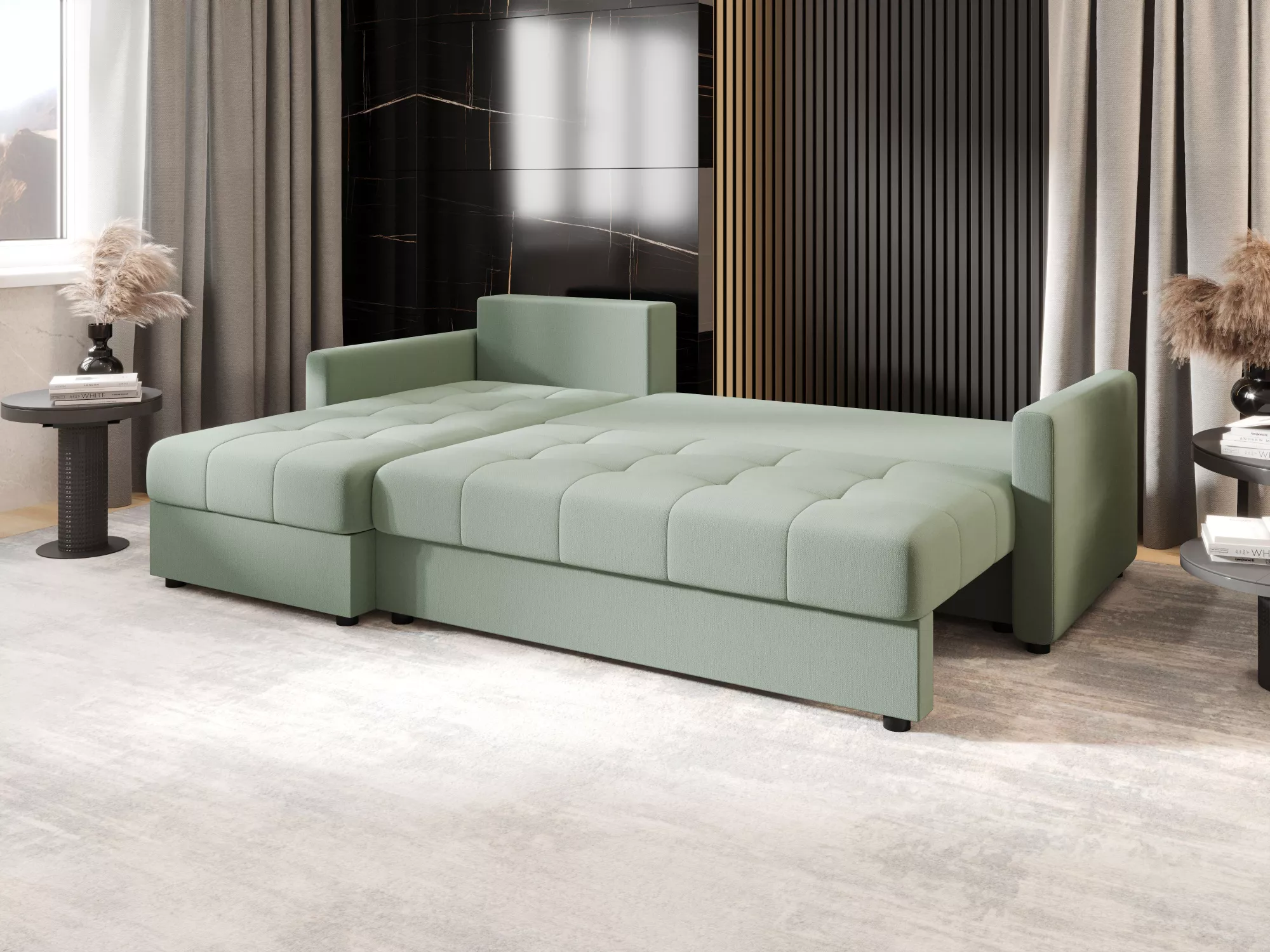 Rozkládací sedací souprava ADELINDE - zelená, levý roh