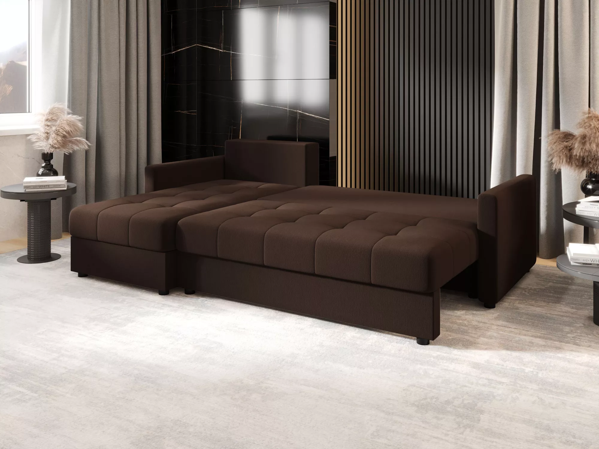 Rozkládací sedací souprava ADELINDE - tmavě hnědá, levý roh